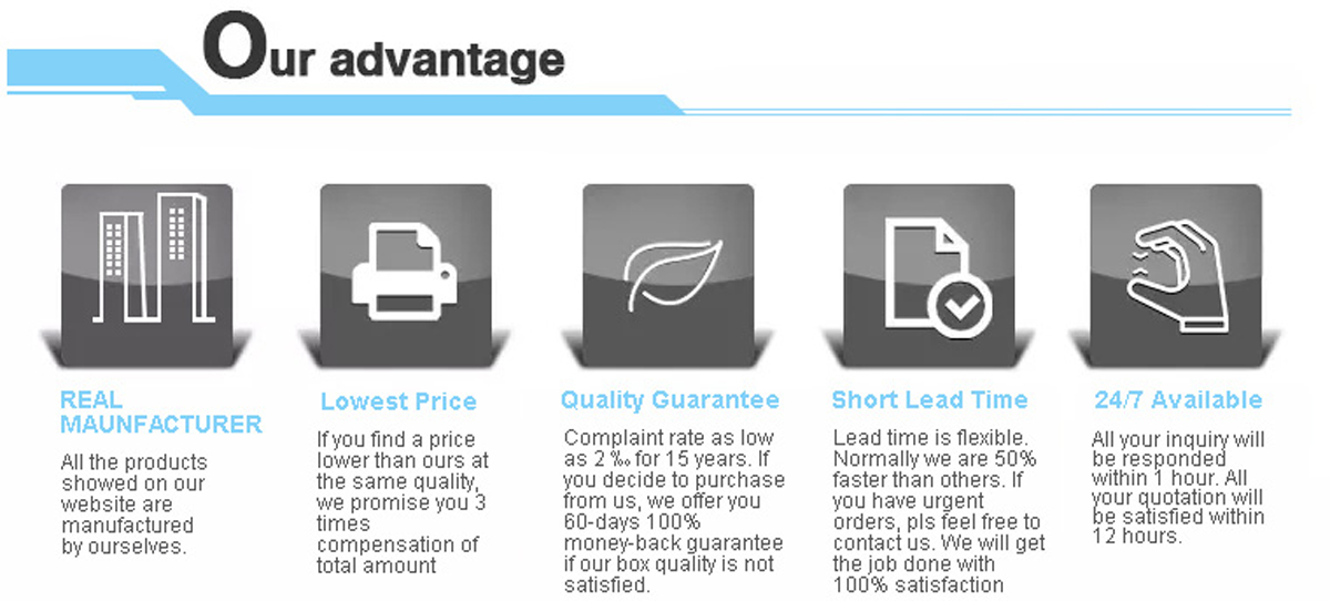 جميع منتجاتنا مصممة خصيصًا حسب طلب العميل. نقدم خدمة متكاملة، من التصميم والإنتاج إلى التسليم، وخاصةً خدمة التوصيل من الباب إلى الباب. إذا لم تكن لديك خبرة في الاستيراد، فسنتولى جميع الإجراءات نيابةً عنك.
