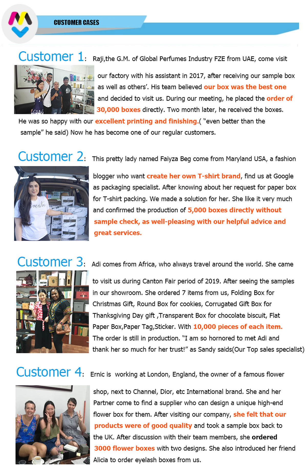 رضاكم عن تغليفنا هو هدفنا! رضا عملائنا وتقديرهم هو أفضل تقييم لنا. انطلاقًا من ثقتنا الراسخة، ومهنيّتنا، وتركيزنا على الجودة، نهدف إلى توفير المزيد من منتجات التغليف عالية الجودة المصنوعة في الصين لعملائنا في الخارج، بما يضمن أعلى قيمة لمنتجاتهم.