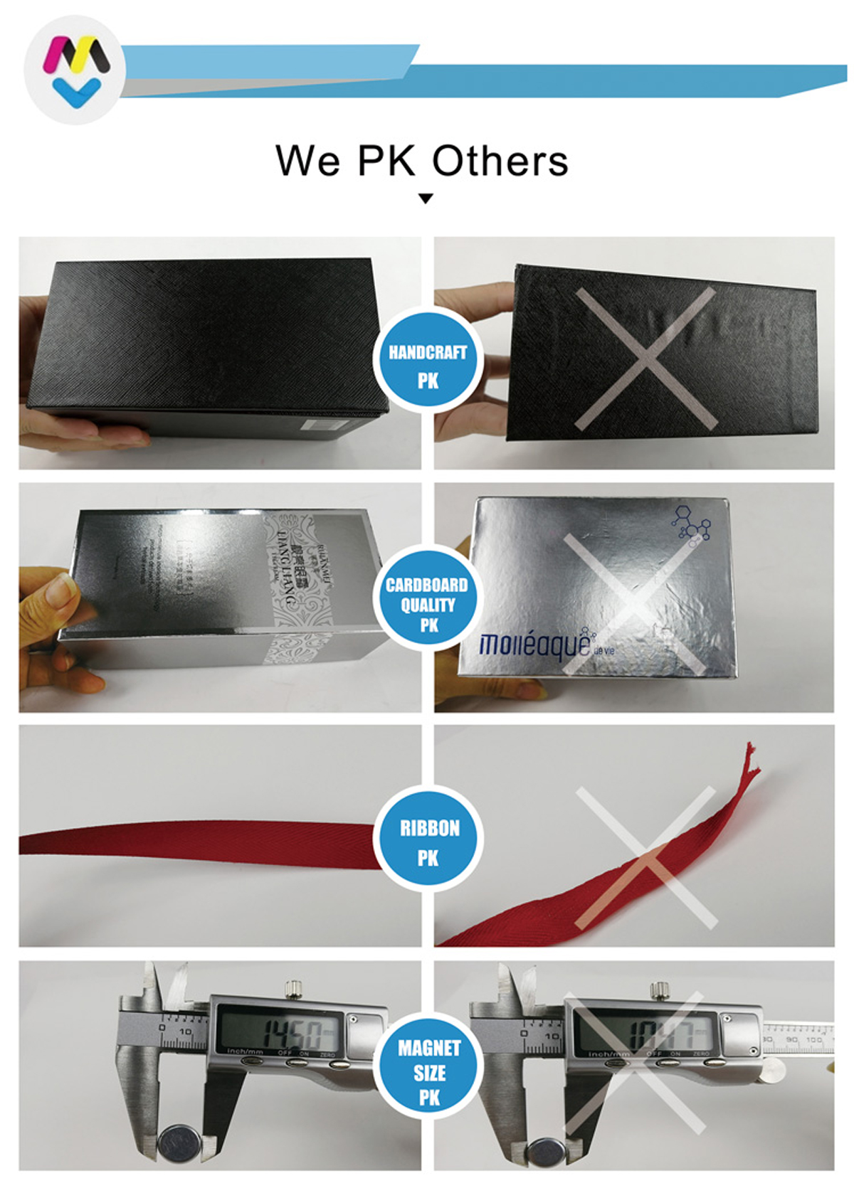 بخبرة تزيد عن 15 عامًا في الإنتاج والصناعة، اكتسبنا سمعة طيبة في السوق المحلية والدولية في مجال إنتاج علب الهدايا. منتجاتنا الرئيسية هي جميع أنواع علب الهدايا الصلبة، مثل العلب المغناطيسية القابلة للطي الأكثر رواجًا، بالإضافة إلى جميع أنواع علب التغليف الفاخرة، وصناديق الشحن، والأكياس الورقية، والدفاتر، والملصقات، وغيرها، للاستخدامات المتنوعة.