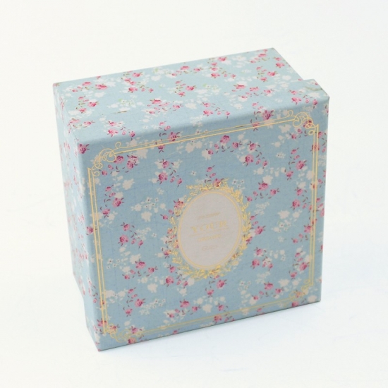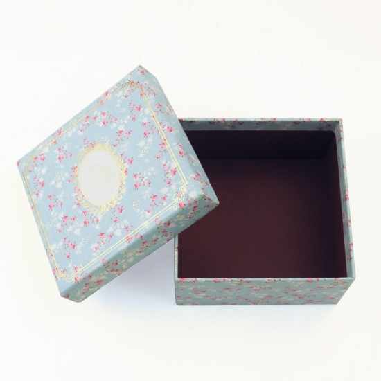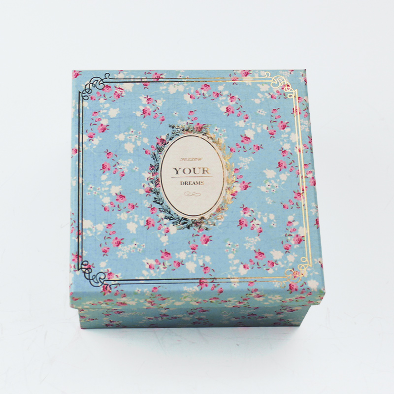 هذه هي صندوق ورقي بغطاء الذي جعل باستخدام ورق فني C2S 157 جرام + لوح رمادي 1200 جرام، صندوق مليء بطباعة زهور صغيرة على الصندوق مع ختم من رقائق ذهبية حول الصندوق، وورقة خاصة حمراء داخل الصندوق.