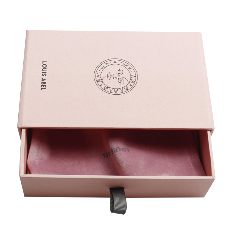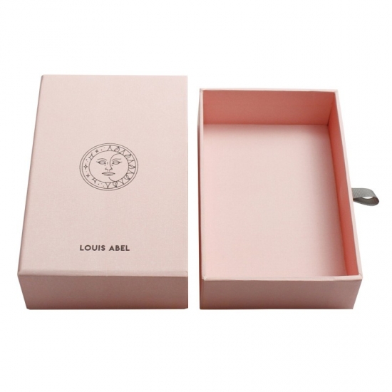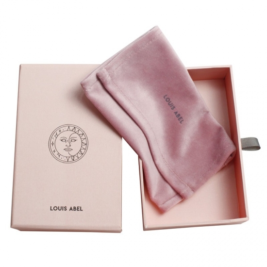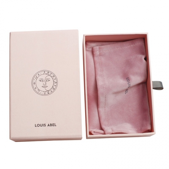 إنه لون وردي صندوق سحب المجوهرات الذي جعل باستخدام ورق نسيج خاص + لوح رمادي 1200 جرام ، مليئة بالطباعة الوردية على الجانبين الأمامي والخلفي مع الشعار والنص، حقيبة مخملية عالية الجودة تتضمن نفس الشعار الموجود في الصندوق.