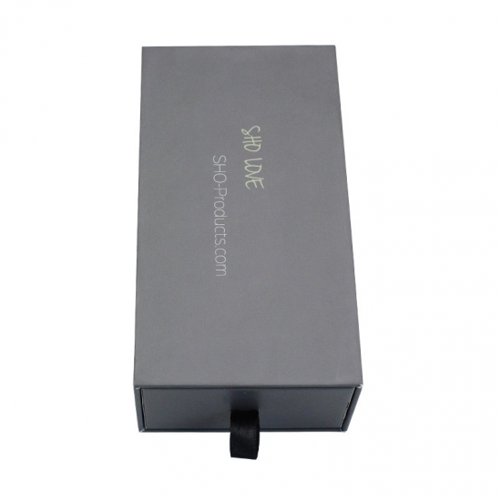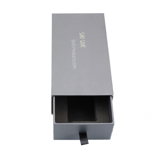 إنه لون وردي سحب صندوق الهدايا الذي جعل من ورق فني C2S + لوح رمادي 1200 جرام ، مليئة بالطباعة الرمادية على الجانب الأمامي والخلفي مع الشعار والنص، والحشو الداخلي يستخدم مادة EVA السوداء بجودة جيدة.