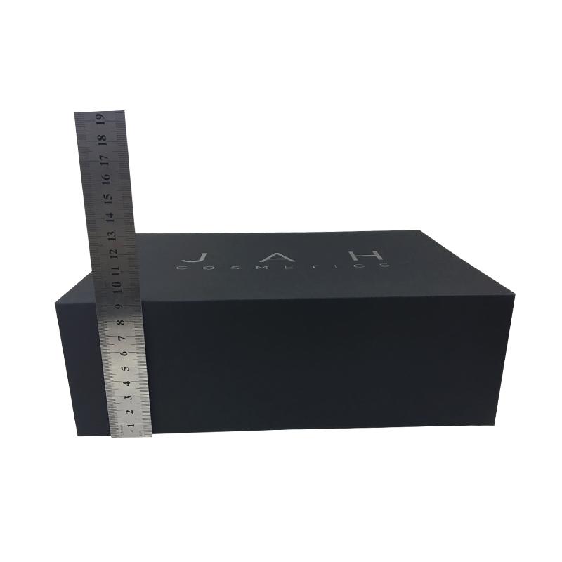 هذا هو صندوق هدايا قابل للطي مع غطاء قابل للطي الذي جعل مصنوعة من ورق أسود + لوح رمادي 1200 جرام، وهي عبارة عن صناديق قابلة للطي من الورق المقوى الأسود مع إغلاق مغناطيسي، والشعار الموجود أعلى الغطاء مطلي بالأشعة فوق البنفسجية.