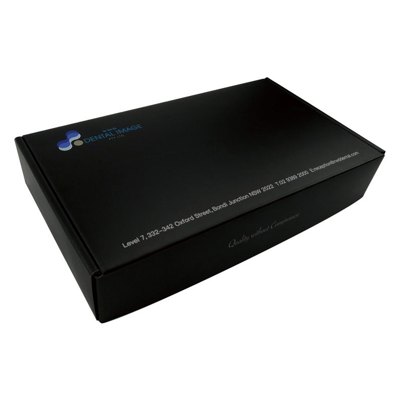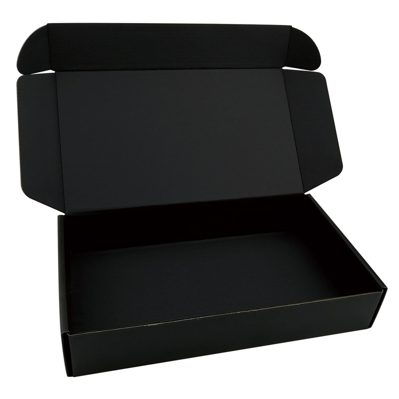هذه هي التغليف المموج الأسود صناديق وهو مصنوع من ورق CCNB+BE flute+black 250g، وهو عبارة عن صندوق بريد بسيط من الداخل والخارج باللون الأسود، مع طباعة شعار مخصص على الجزء الخارجي من الصندوق بلمسة نهائية غير لامعة.
