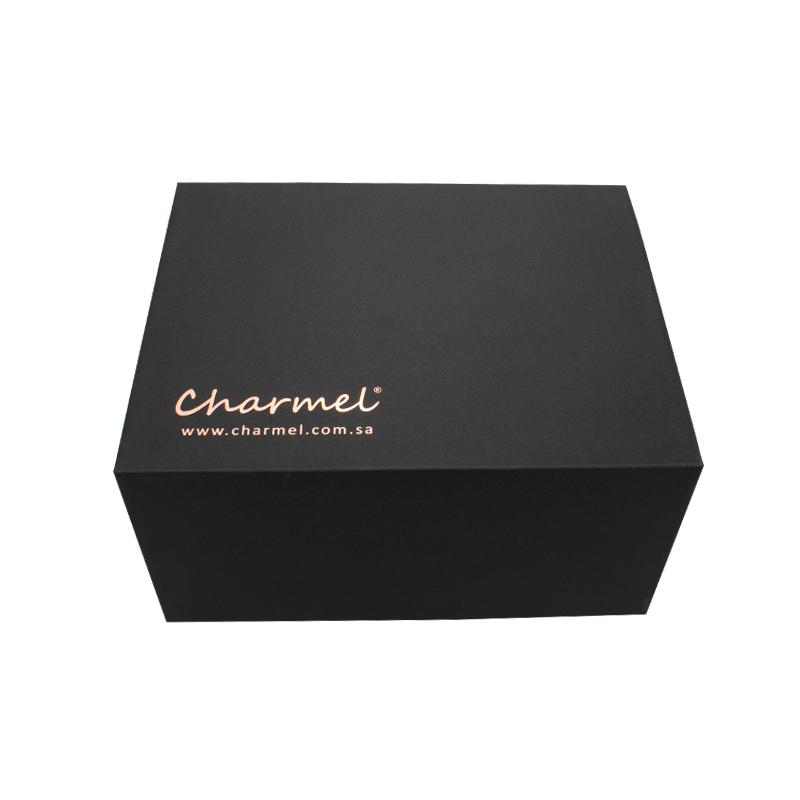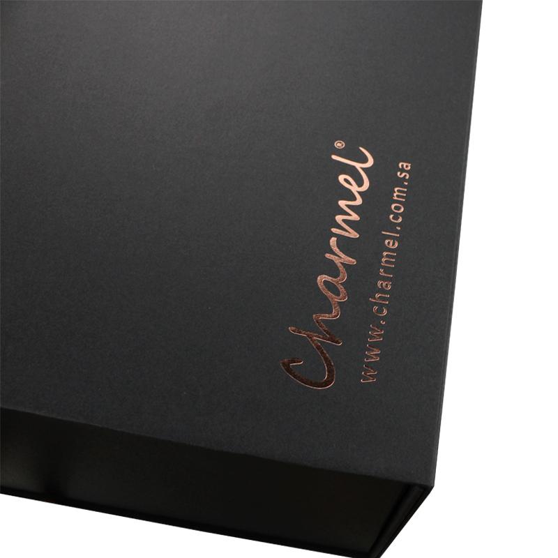 أسود عالي الجودة صناديق التعبئة والتغليف القابلة للطي ، لتغليف هدايا الترويج للقهوة، صندوق هدايا يحمل شعار الذهب الوردي.