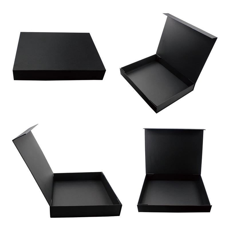 هذه صناديق من الورق المقوى الأسود البسيطة الصغيرة القابلة للطي بدون أي شعار أو طباعة، مصنوعة من ورق مقوى أسود خاص ولوح رمادي سمك 2 مم. إنه صندوق تغليف عالي الأداء وعالي الجودة.