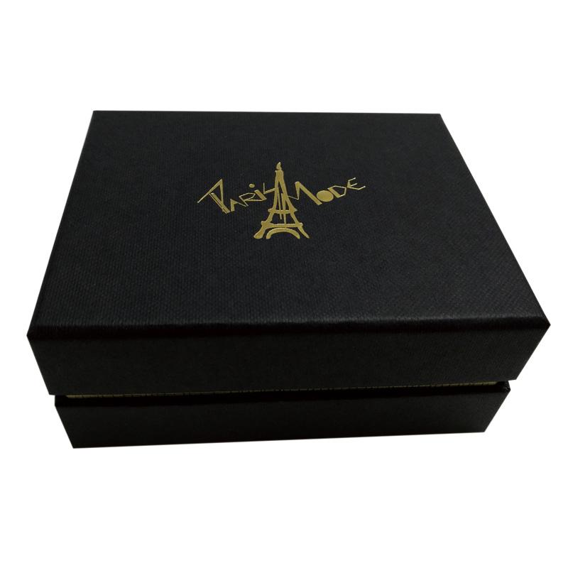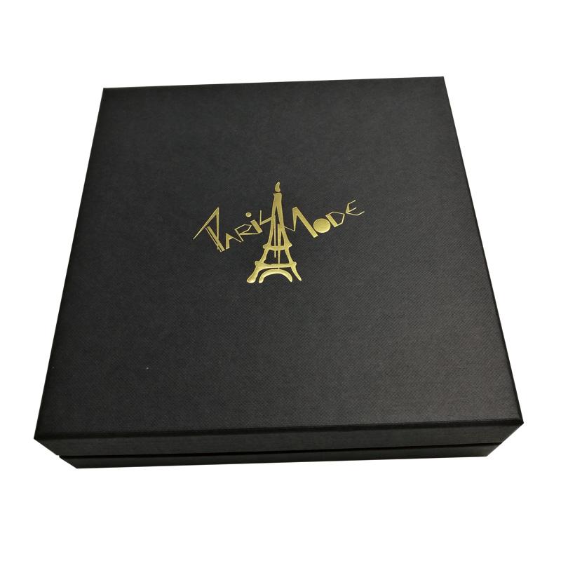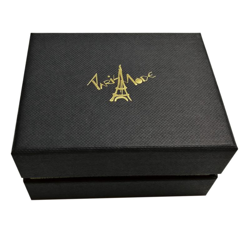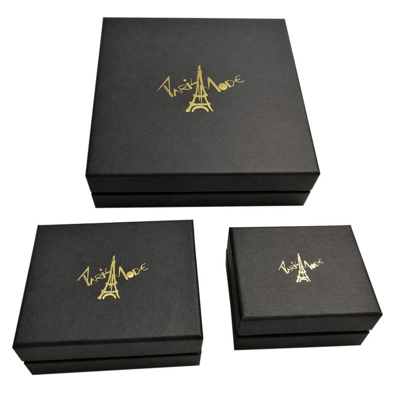 هذه مجموعة واحدة من الفخامة غطاء أسود وصندوق سفلي الذي جعل مصنوعة من ورق نسيجي خاص + لوح رمادي 1200 جرام، وأساور القاعدة مصنوعة من ورق خاص ذهبي والشعار الموجود أعلى الصندوق مختوم بورق ذهبي. يوجد صندوق كبير لحمل 3 صناديق أصغر مختلفة الحجم.