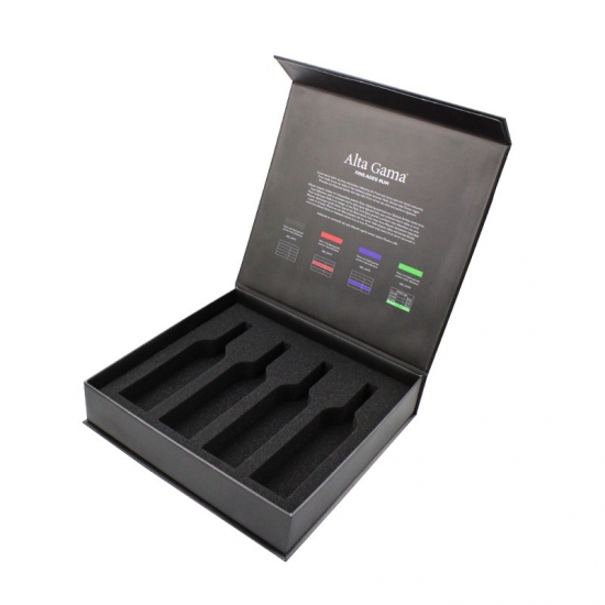 هذه هي إدراج رغوة داخل صندوق التعبئة والتغليف الذي جعل باستخدام ورق فني C2S 157 جرام + لوح رمادي 1200 جرام، وشعار خارجي للصندوق مطلي بالأشعة فوق البنفسجية، ومعلومات الاتصال مطبوعة داخل الصندوق والإسفنجة التي يمكن تشكيلها حسب الطلب وفقًا لذلك.