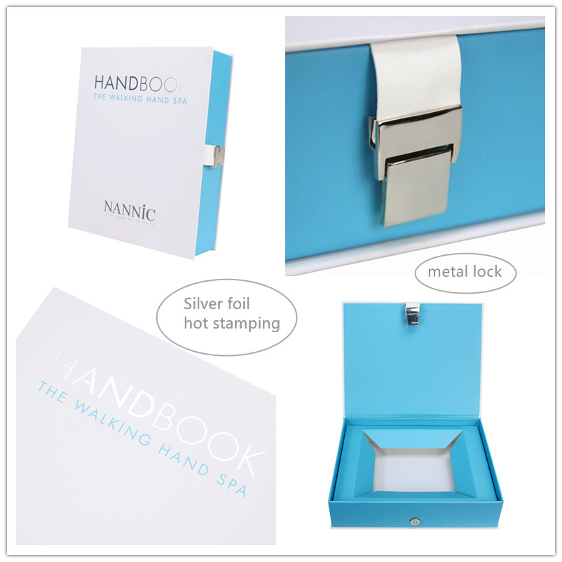 صندوق تغليف هدايا على شكل كتاب مخصص مع قفل معدني