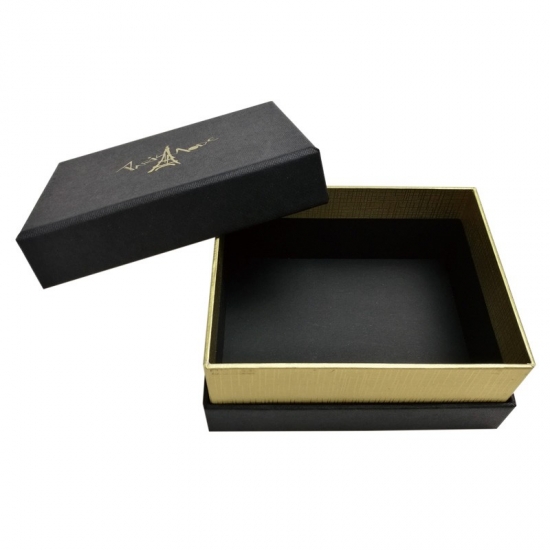 صندوق مخصص مكون من مجموعة واحدة داخل صندوق صغير بالداخل مع غطاء وقاعدة ذهبية، مصنوع من ورق خاص أسود + لوح رمادي 1200 جرام، ختم رقائق الذهب بالشعار يتطابق جيدًا مع لون السوار الذهبي.الاستخدام: أي نوع من المنتجات وتغليف الهدايا والعطور والمجوهرات ومستحضرات التجميل والملابس وما إلى ذلك.