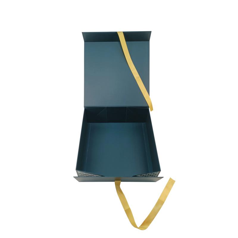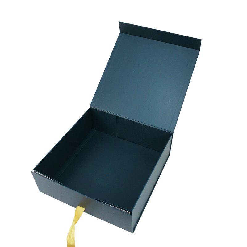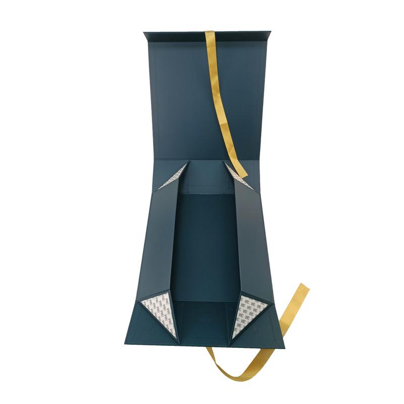 رفاهية صندوق ورقي مغناطيسي قابل للطي مصنوع من ورق فني بوزن 157 غرامًا للمتر المربع، مغلف بورق مقوى متين، مطبوع عليه لون بانتون أزرق داكن على جميع الصناديق، مع شعار مخصص مطبوع بلون بانتون الذهبي. مزود بمغناطيس وشريط لإغلاق الصندوق، مع شريط لاصق 3M على الزوايا الأربع للحفاظ على شكل الصندوق. يُستخدم هذا المنتج بكثرة في تغليف الأحذية، وغيرها. تغليف الهدايا البوتيك .