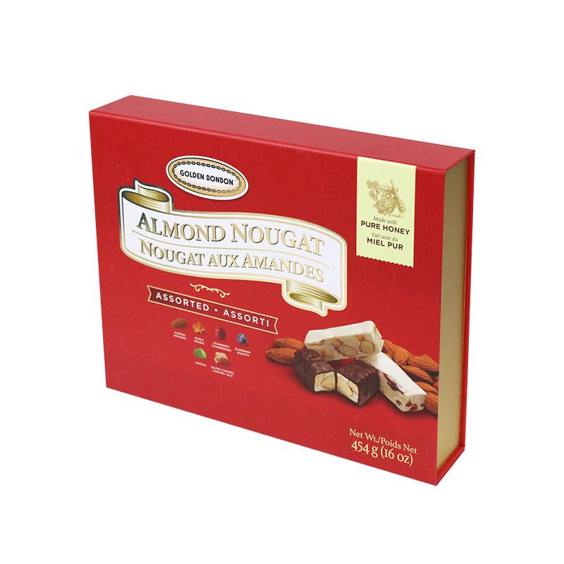 مادة الصندوق: ورق ذهبي معدني 152 جرامًا للمتر المربع، ولوح رمادي مزدوج 2 مم مثبت عليه ورق فني C2S 157 جرامًا للمتر المربع + مغناطيسات قوية