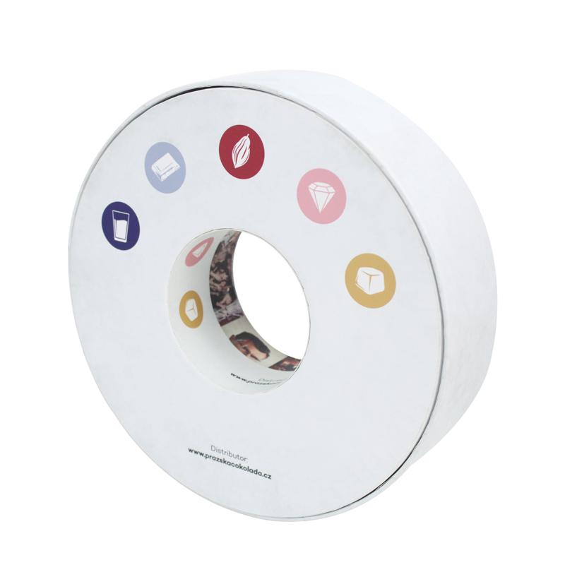صندوق هدايا دائري من الورق المطبوع بتصميم مخصص مع أغطية للبيع بالجملة