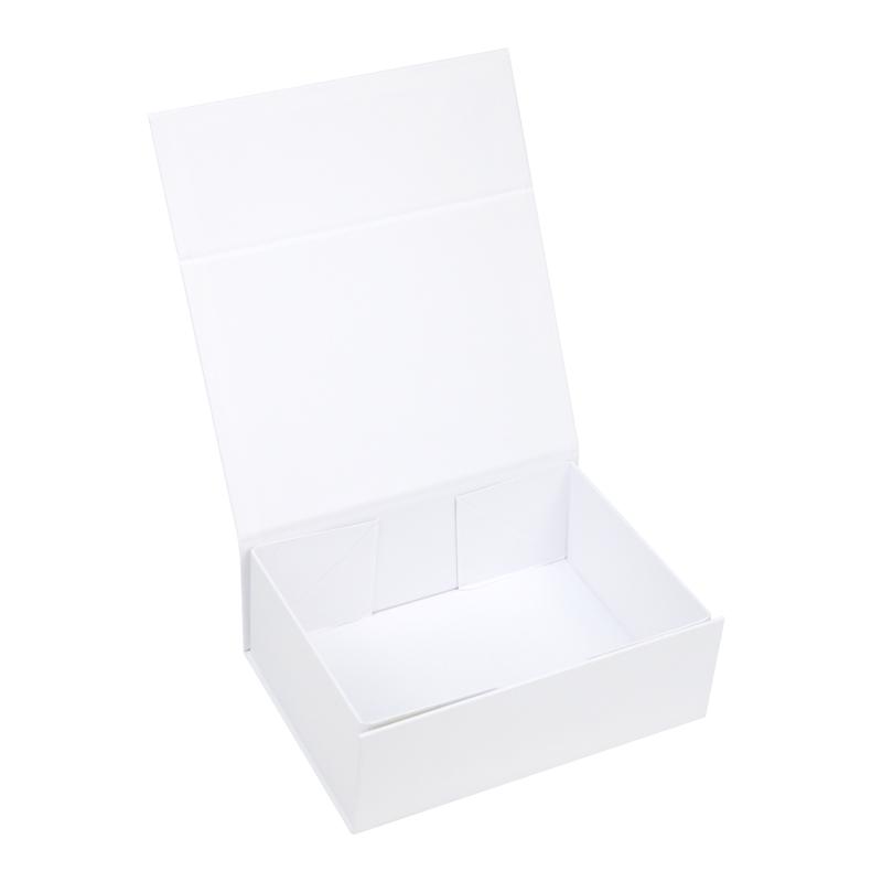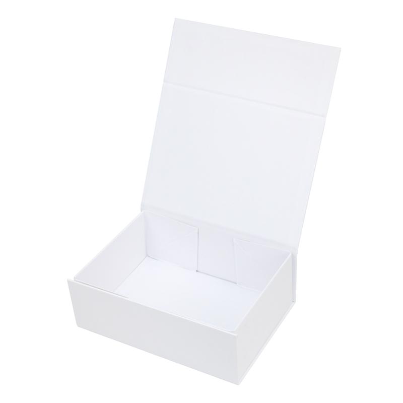 الصندوق المغناطيسي الأبيض هو صندوق تغليف ورقي قابل للطي بغطاء مغناطيسي. اللون الأبيض شائع في علب الهدايا.
