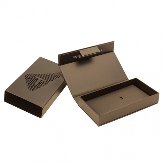 صندوق هدايا صغير بإغلاق مغناطيسي مصنوع من ورق فني C2S 157 جرامًا للمتر المربع ومغلف بورق مقوى رمادي 1.5 مم، وطلاء UV موضعي، وتصفيح غير لامع