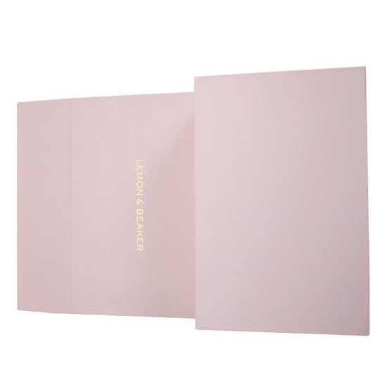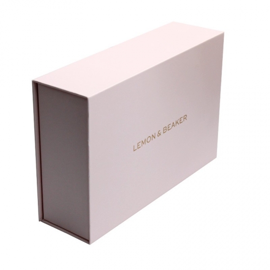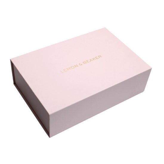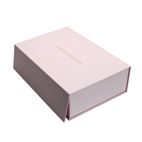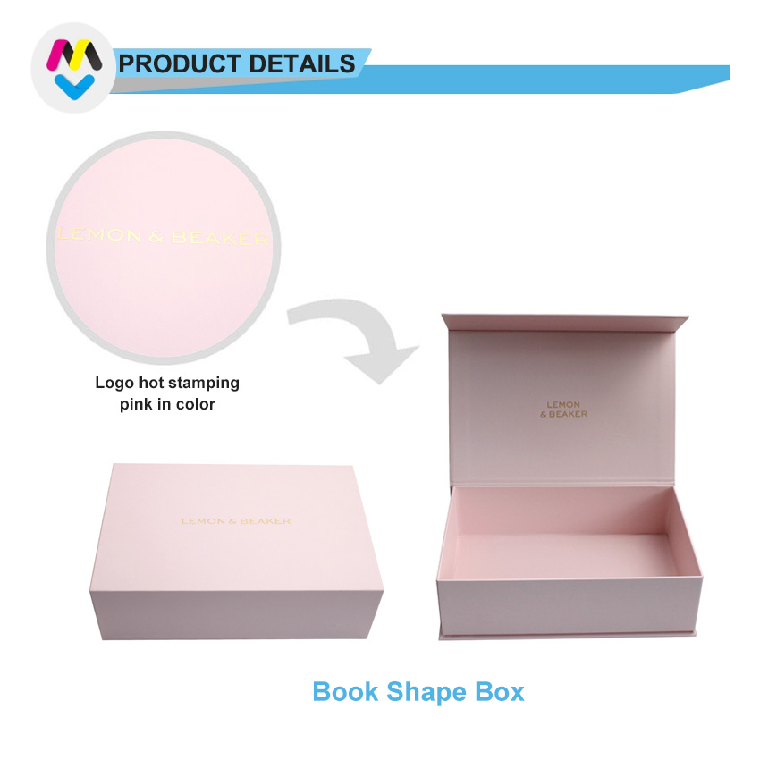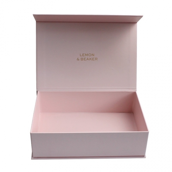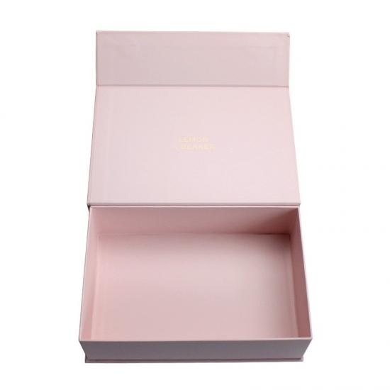 صندوق الهدايا المغناطيسي الوردي مصنوع من ورق فني C2S 157 جرامًا للمتر المربع ومغلف بورق مقوى رمادي 2 مم، وتغليف غير لامع، وختم ساخن باللون الوردي