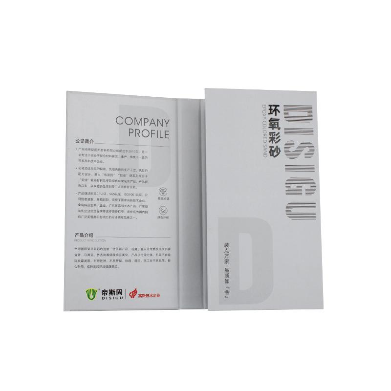 2) المواد: ورق فني C2S 157 جرامًا للمتر المربع، ورق مقوى رمادي 1200 جرامًا للمتر المربع