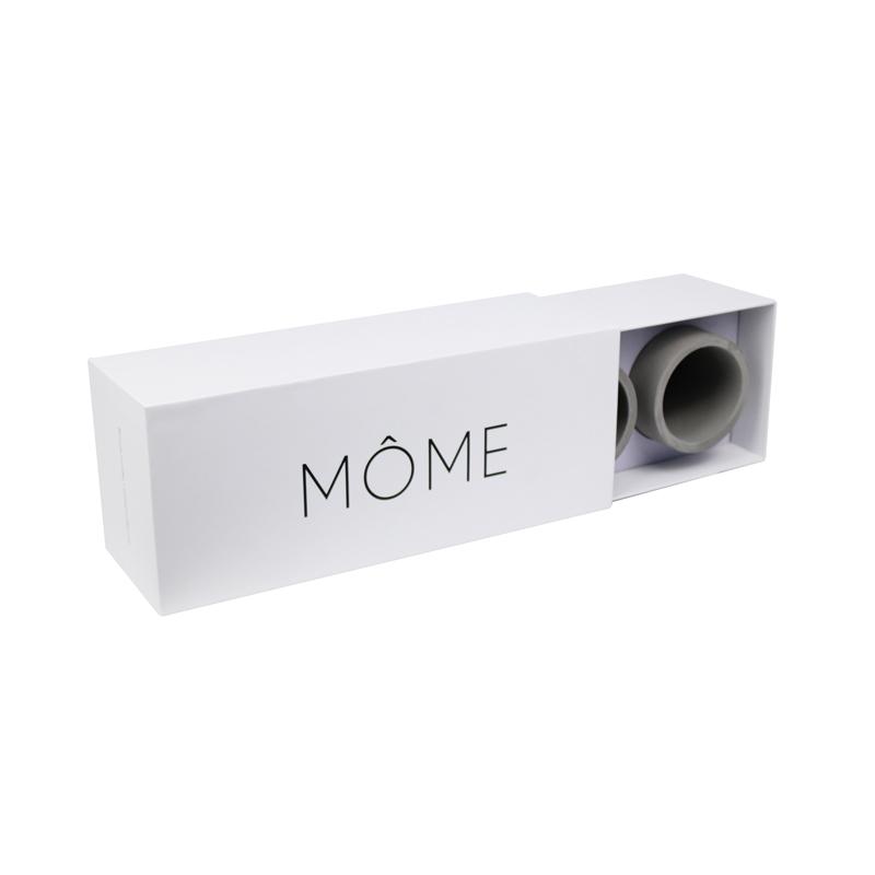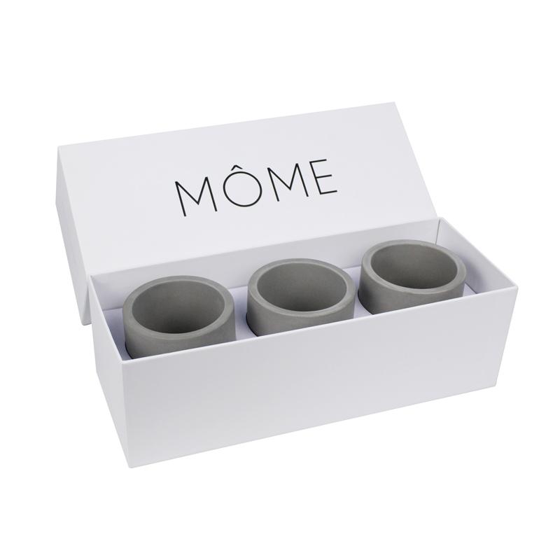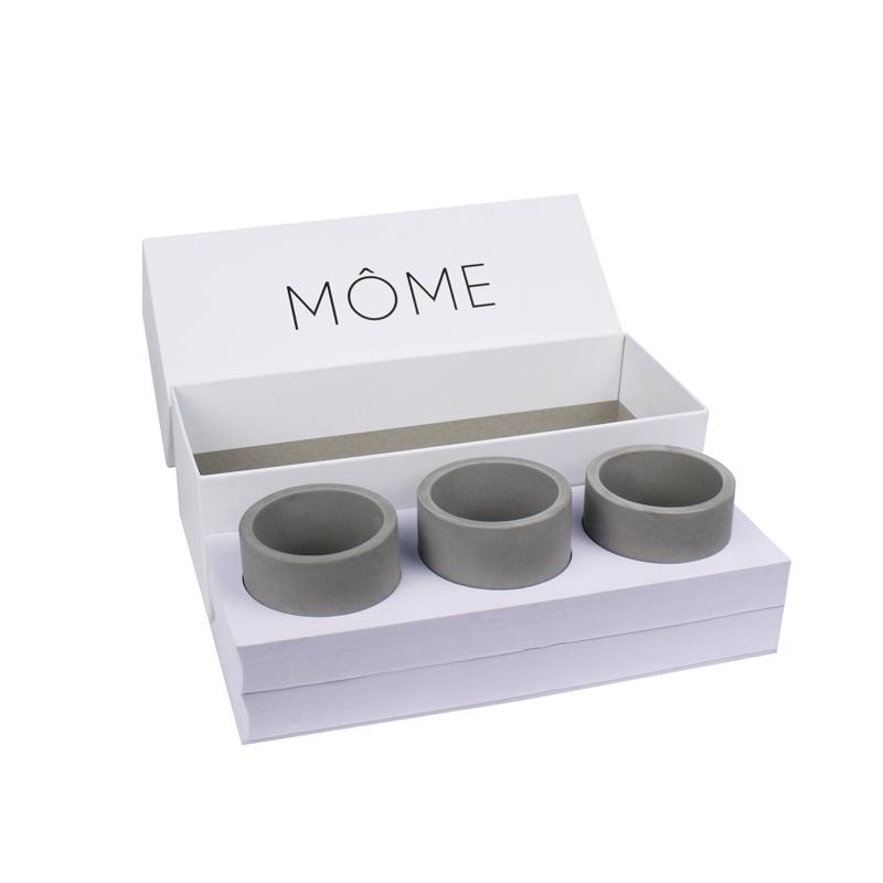 هذا صندوق على شكل درج صُمم خصيصًا لتغليف أكواب السيراميك. ورق أبيض مطبوع عليه شعار ونص أسود، مع بطانة بيضاء من مادة EVA محفورة على شكل الكوب. يمكن وضع الأكواب الثلاثة داخل الكوب بإحكام وأمان أثناء الشحن.