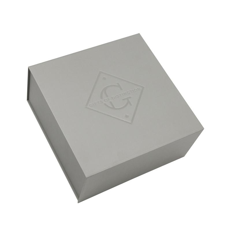 علب هدايا مغناطيسية من الورق المقوى الرمادي بشعار مخصص منقوش بالأشعة فوق البنفسجية