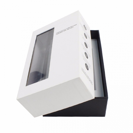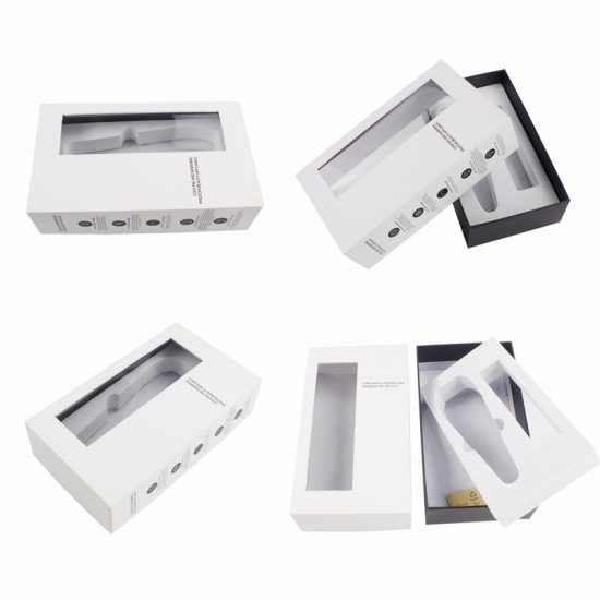 Normally 15-20 days after design/sampleصناديق طويلة مخصصة باللونين الأبيض والأسود مع غطاء شفاف للعرض