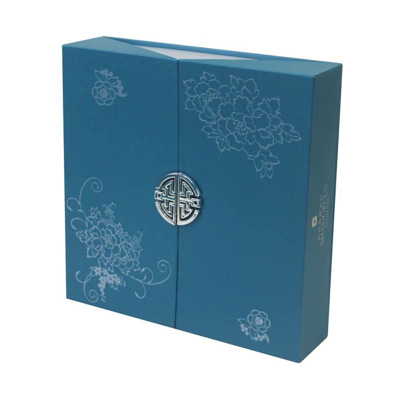 تشطيب الصندوق: طباعة باللون الأزرق بانتون، تغليف فيلم غير لامع، نقش بارز، ختم ساخن بورق ذهبي،