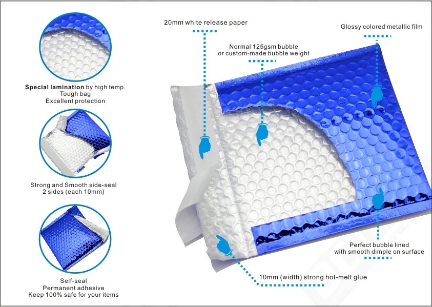 مادة المنتج: غشاء مُلَوَّن + فقاعات بولي إيثيلين. يمكن تخصيص لون الغشاء المُلَوَّن، ومحتوى الطباعة.