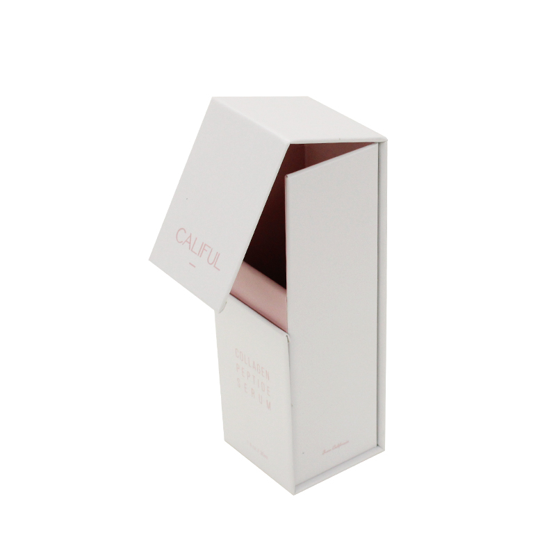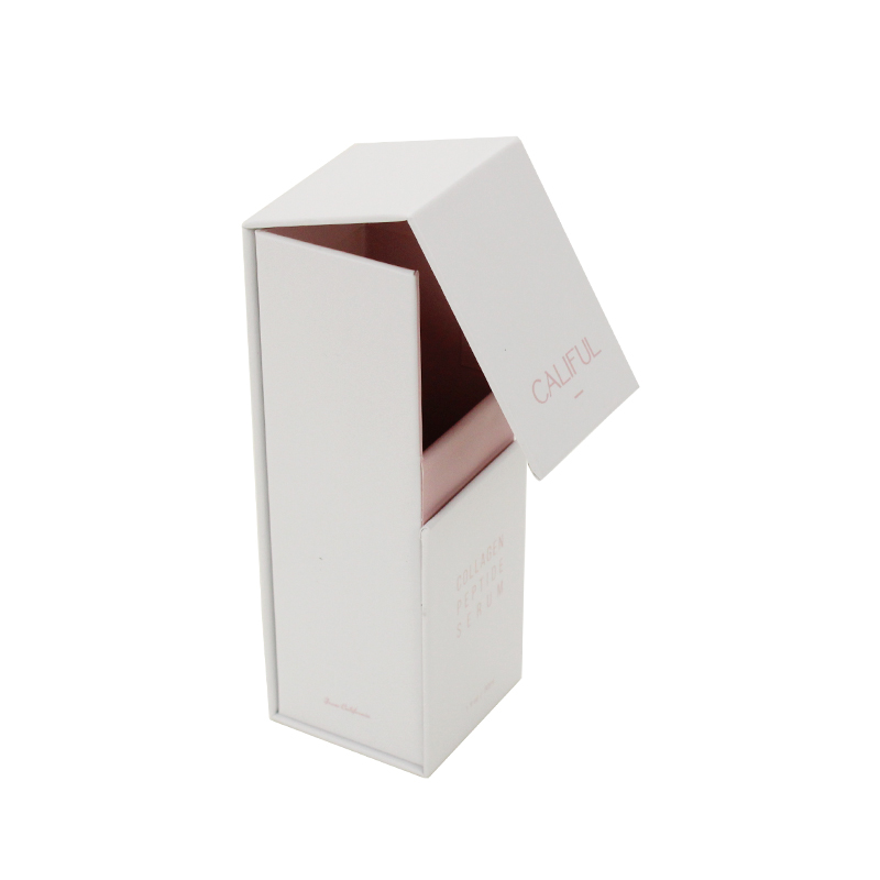 هذه هي مغناطيس قائم صغير الحجم صندوق الذي جعل مصنوع من ورق فني 157 جرام + لوح رمادي 1200 جرام، مغطى من الخارج باللون الأبيض غير اللامع ومغطى من الداخل بورق مقوى وردي.
