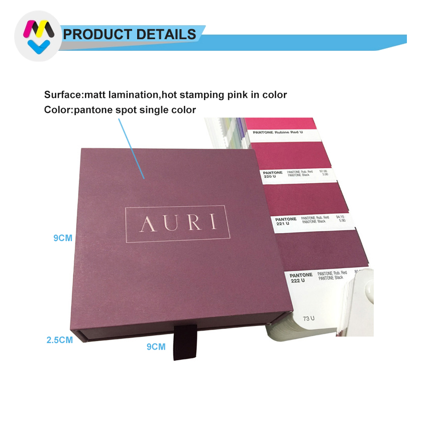 قم بتخصيص صناديق الأدراج الكرتونية البسيطة ذات الألوان البانتوانية الفريدة الخاصة بك، والتصفيح غير اللامع، والختم الساخن باللون الوردي باللون الأرجواني، واستخدم لون بانتون.