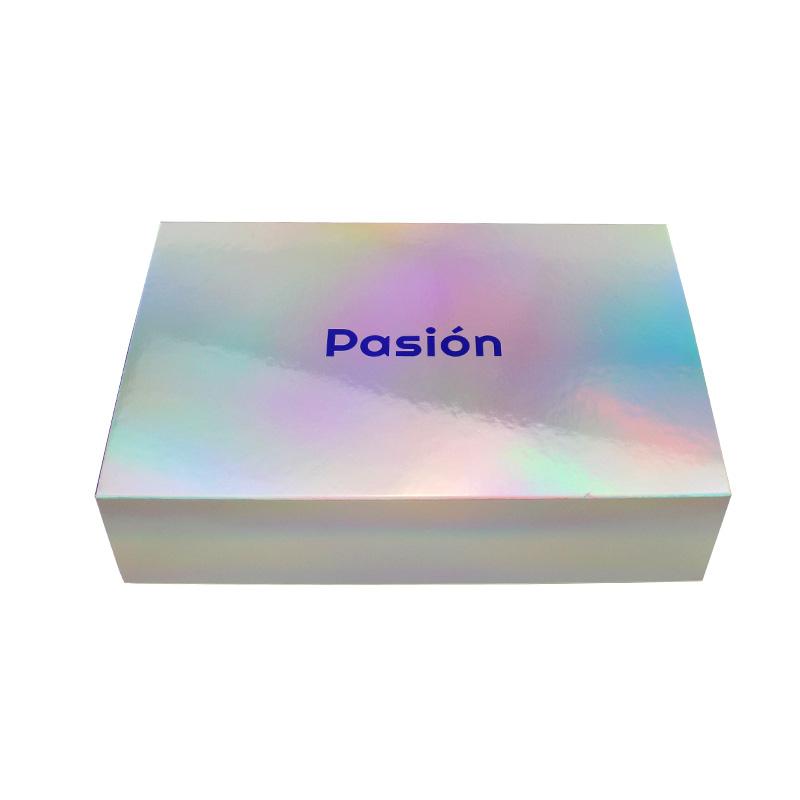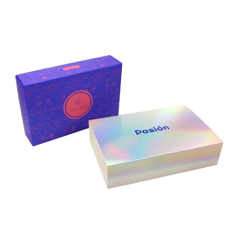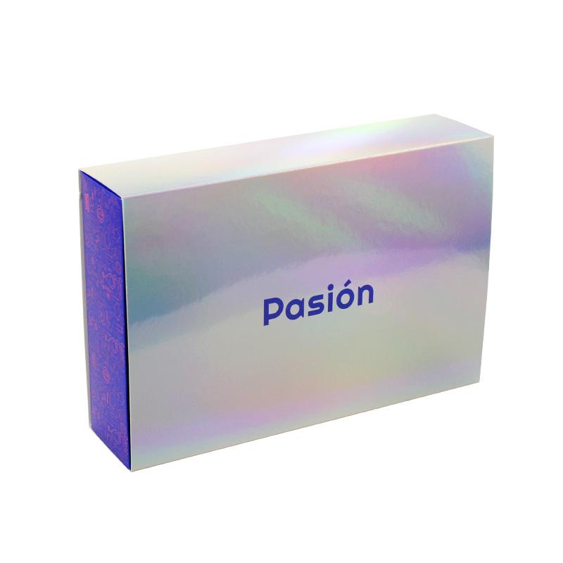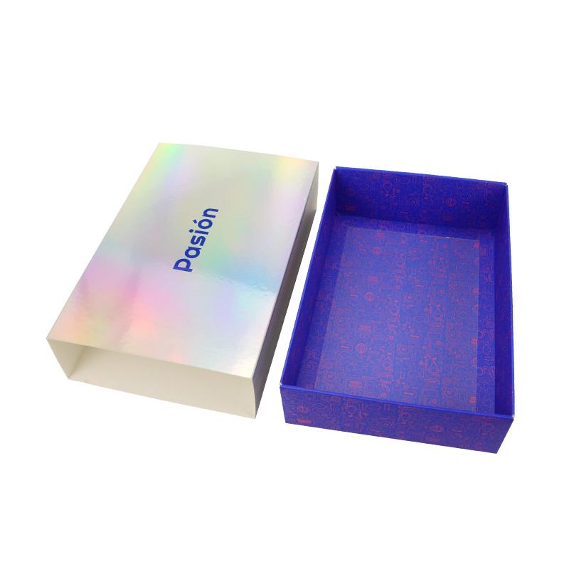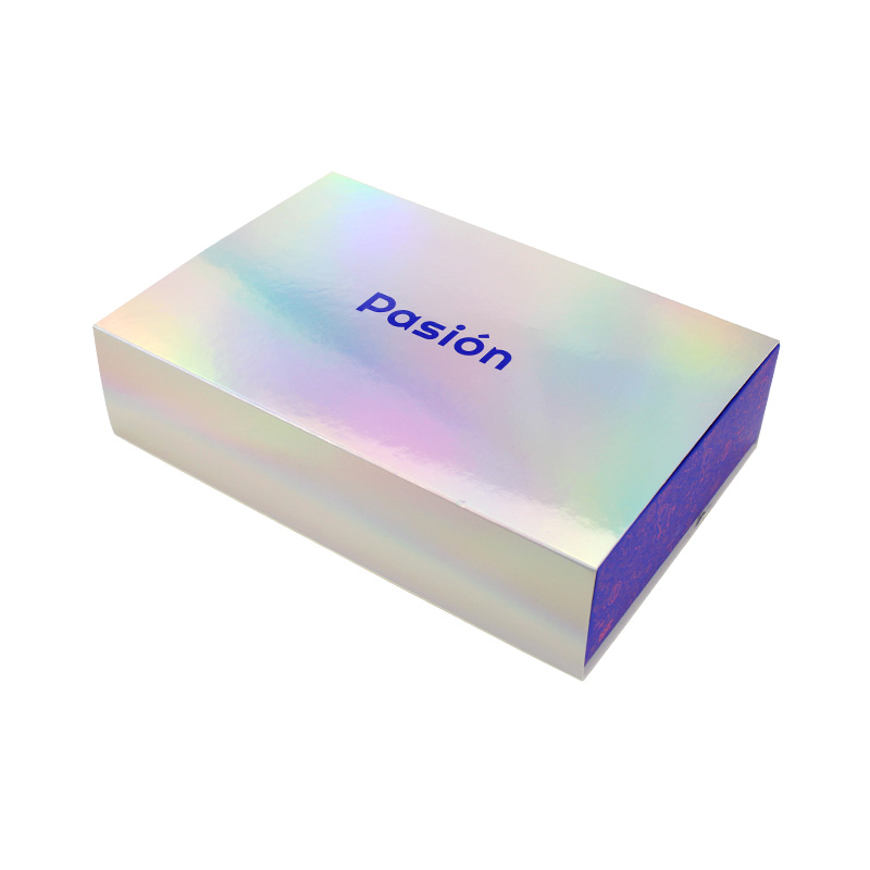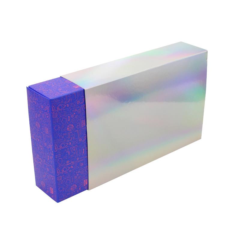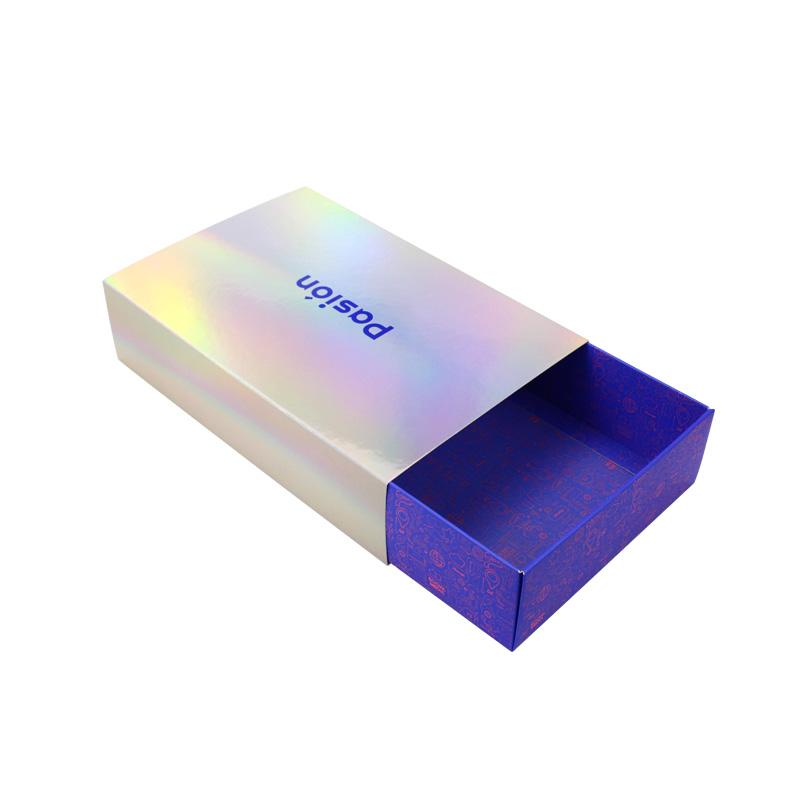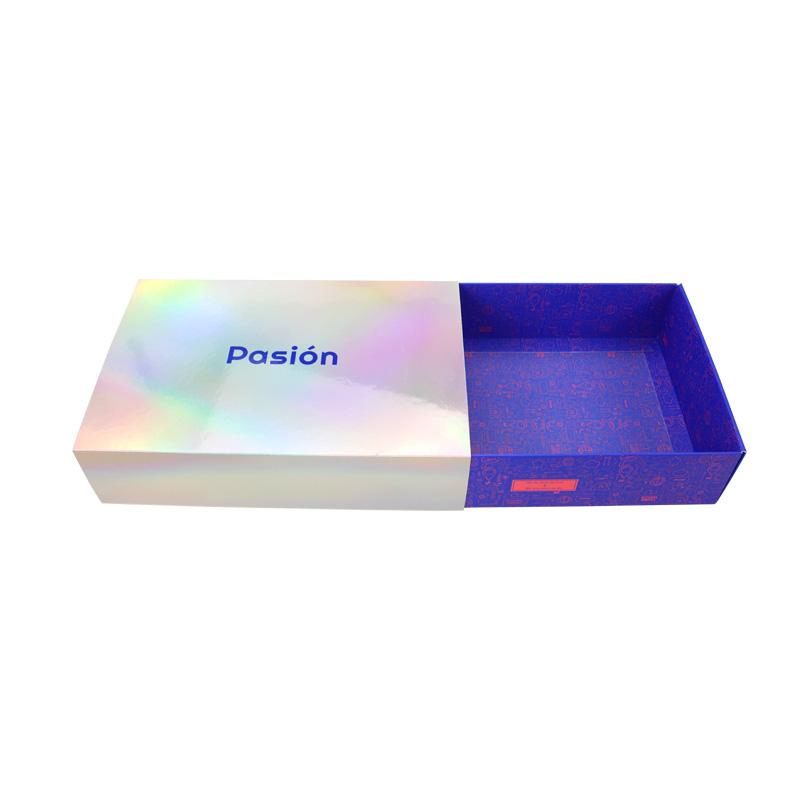هذه هي صندوق درج منزلق الذي جعل بواسطة ورق خاص بالليزر + ورق فني C1S 350 جرام، مليئة بطباعة نمط غير لامع مخصصة على الصندوق السفلي، والشعار في رقائق معدنية على ورق الليزر الغطاء.