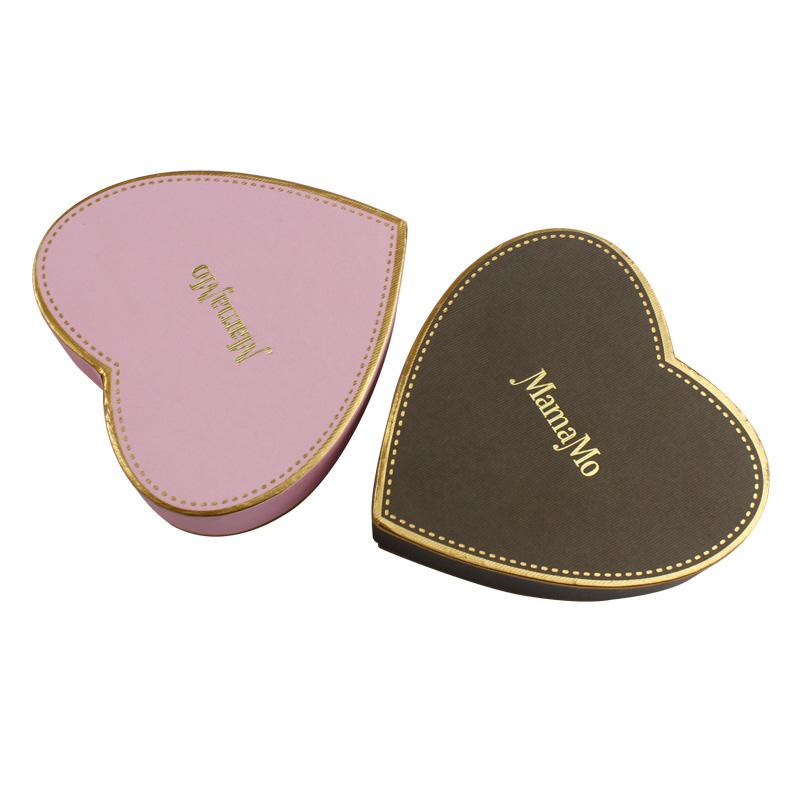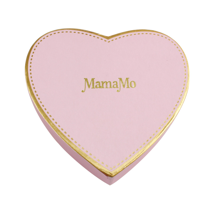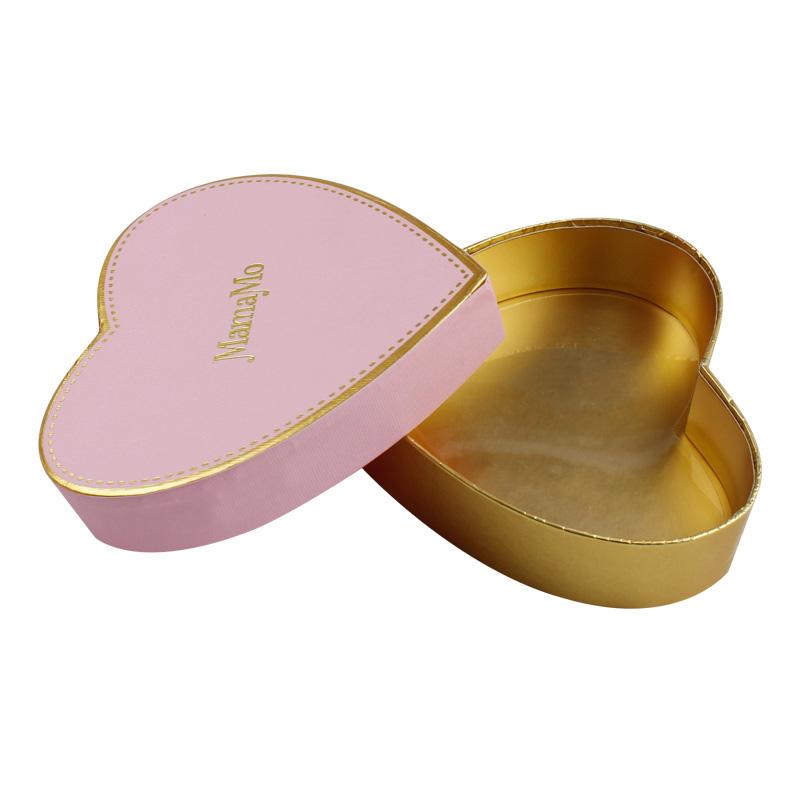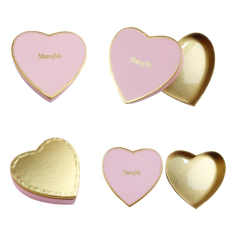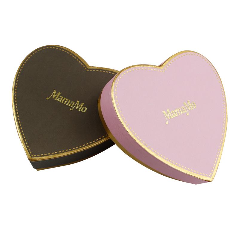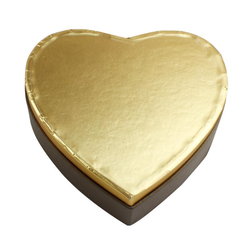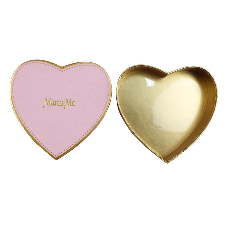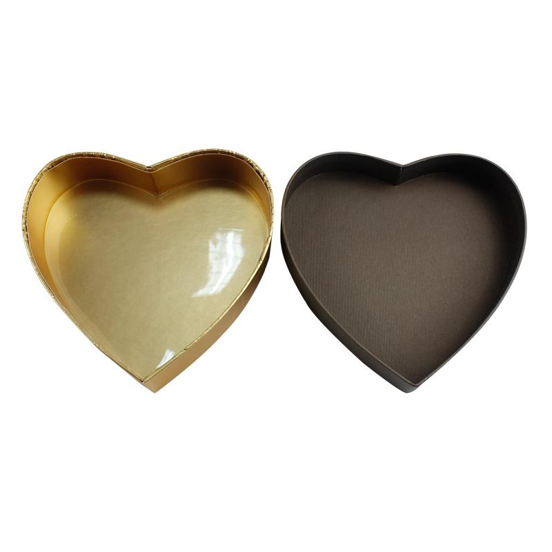 هذه هي صندوق شوكولاتة على شكل قلب الذي جعل من ورق فني مطلي على الوجهين + ورق خاص، والجزء الخارجي من الغطاء مطبوع بالكامل بطلاء غير لامع، والجزء الداخلي من القاعدة يستخدم ورقًا خاصًا لامعًا.