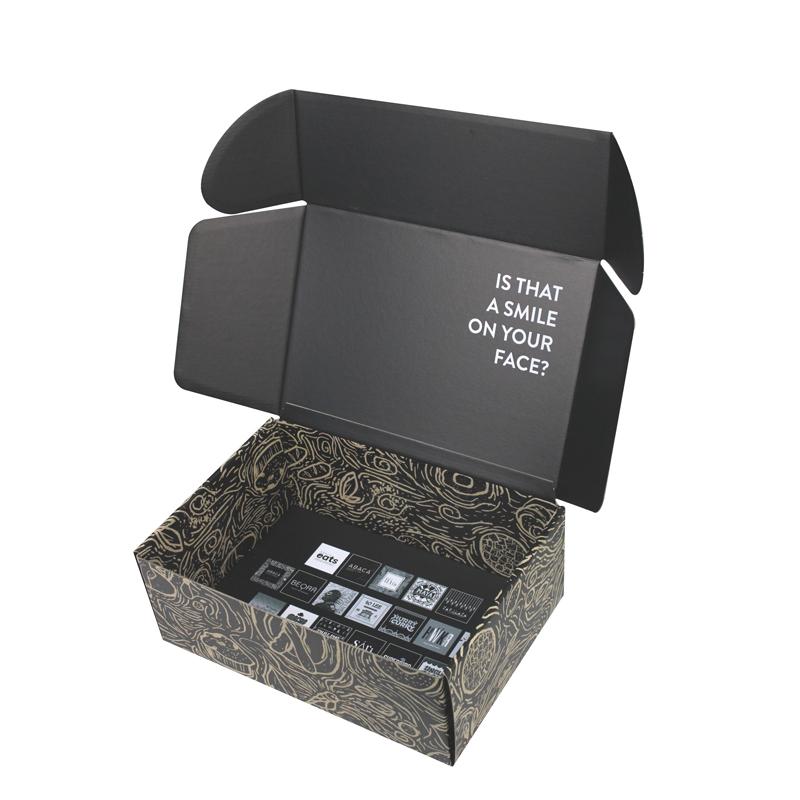 صناديق شحن مموجة سوداء غير لامعة مطبوعة حسب الطلب من المصنع