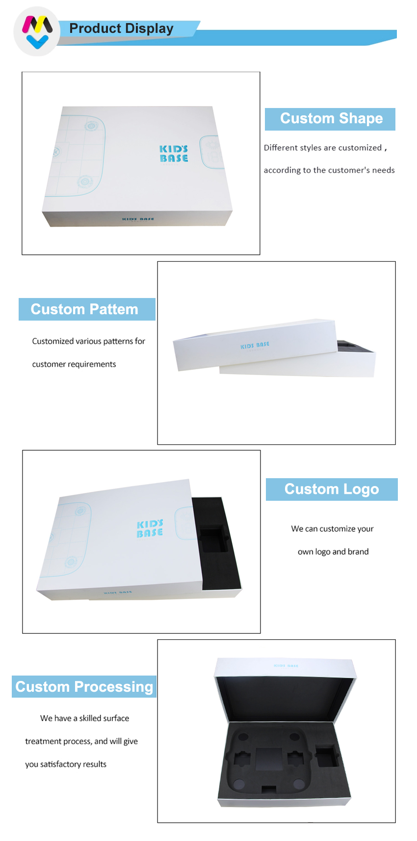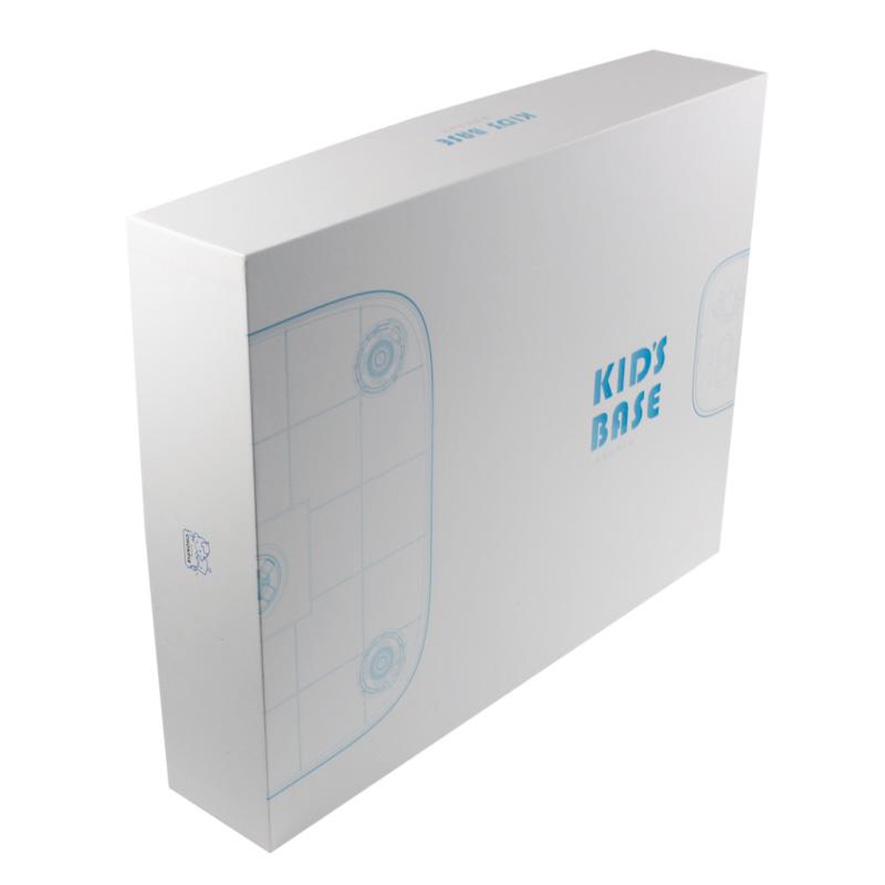 هذا الصندوق مُصمّم لحمل منتجات الأطفال، كالألعاب، وهو مصنوع من ورق فني بوزن 157 غرامًا وكرتون رمادي. يحمل شعارًا أزرق مميزًا، وهو صغير ومسطح، أبعاده 18*12*3 سم.