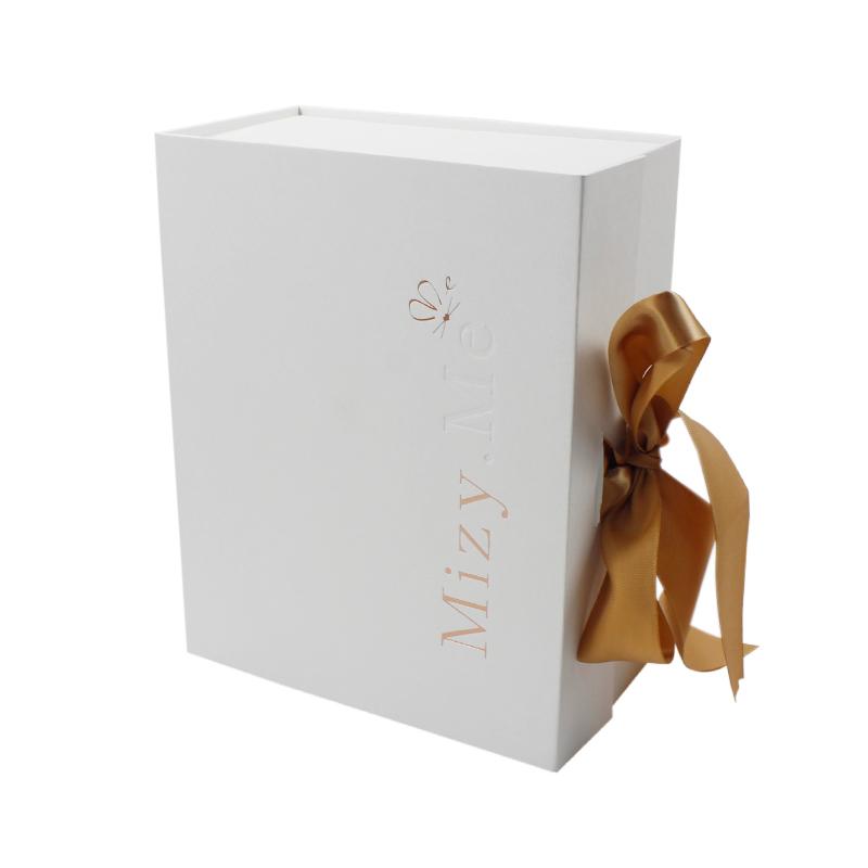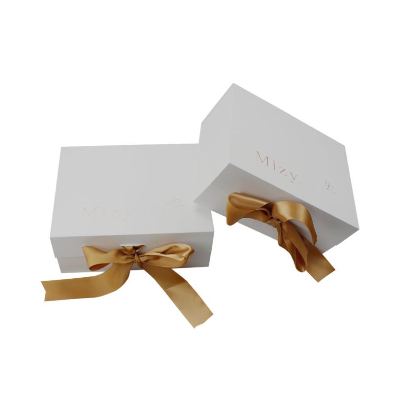 هذه هي صناديق هدايا مغناطيسية بيضاء الذي جعل باستخدام ورق خاص + لوح رمادي 1200 جرام، وشعار منقوش بورق ذهبي + منقوش على الجزء الخارجي من الصندوق وشريط الإغلاق المرفق يطابق لون الشعار، أبيض عادي بدون طباعة داخل الصندوق. يمكننا تخصيص الحجم حسب طلبك.