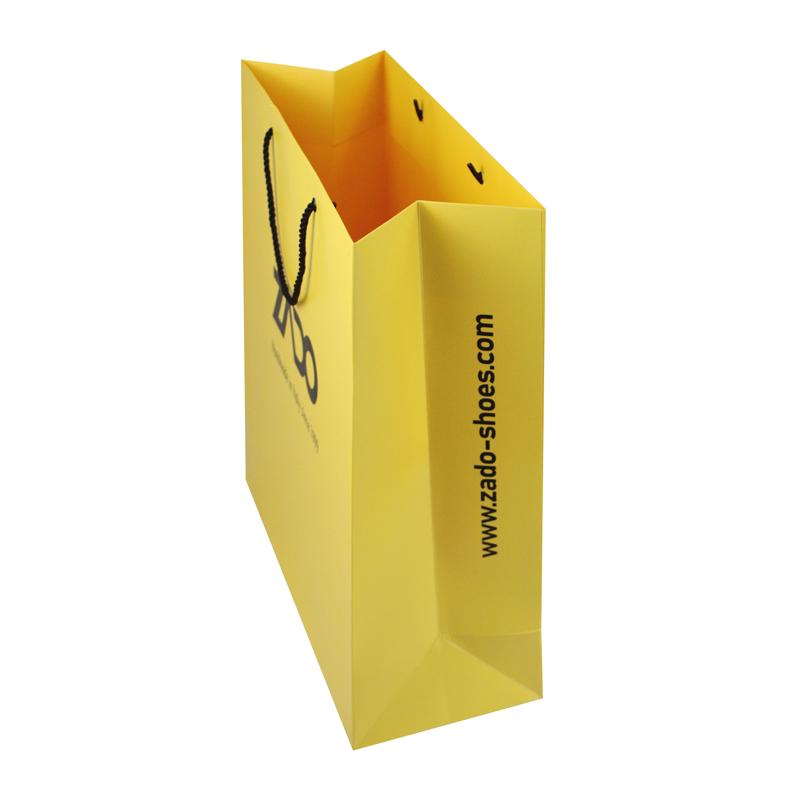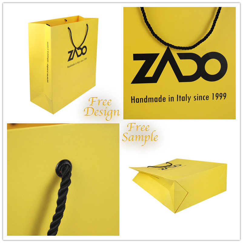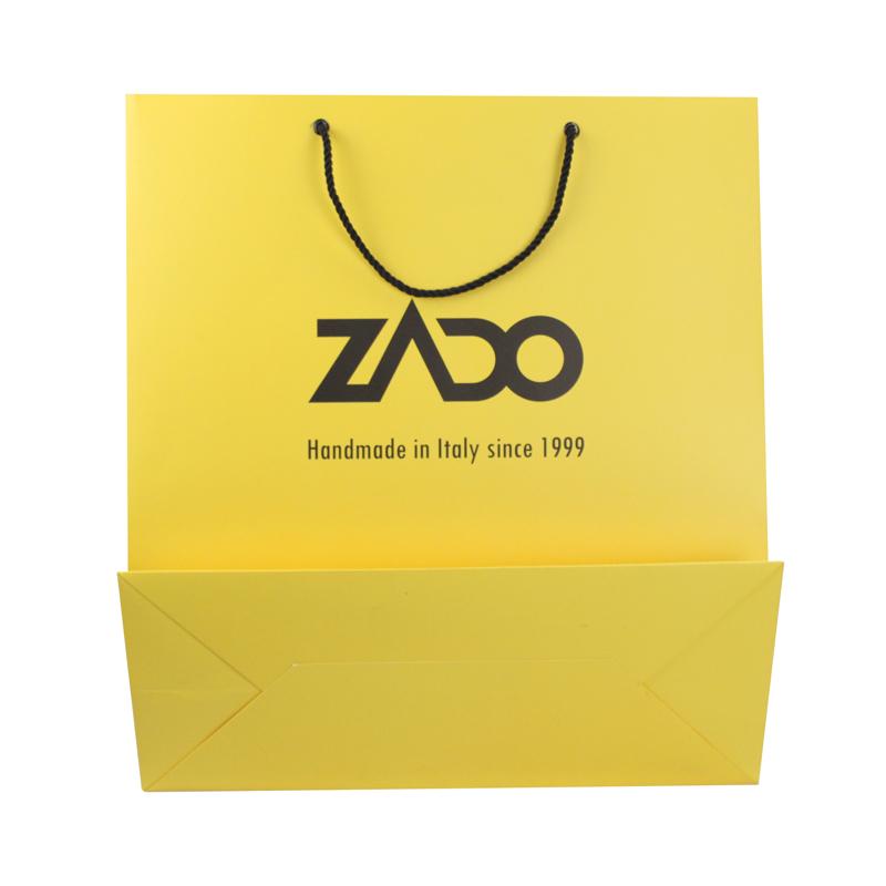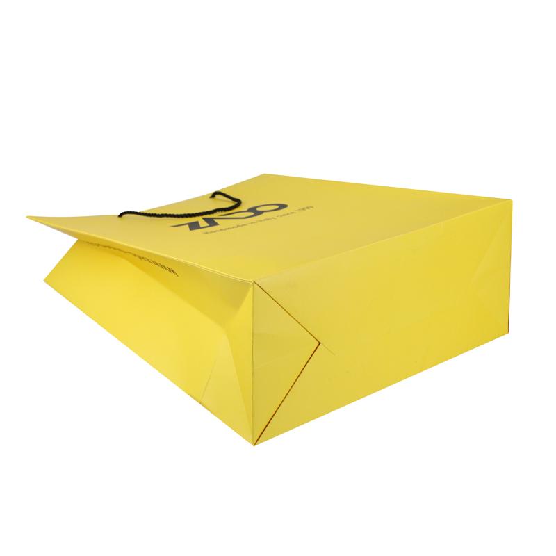 3. تشطيب الحقيبة: طباعة بالحبر الأصفر بالكامل، طباعة الشعار باللون الأسود، تغليف الفيلم غير اللامع لحماية الحبر