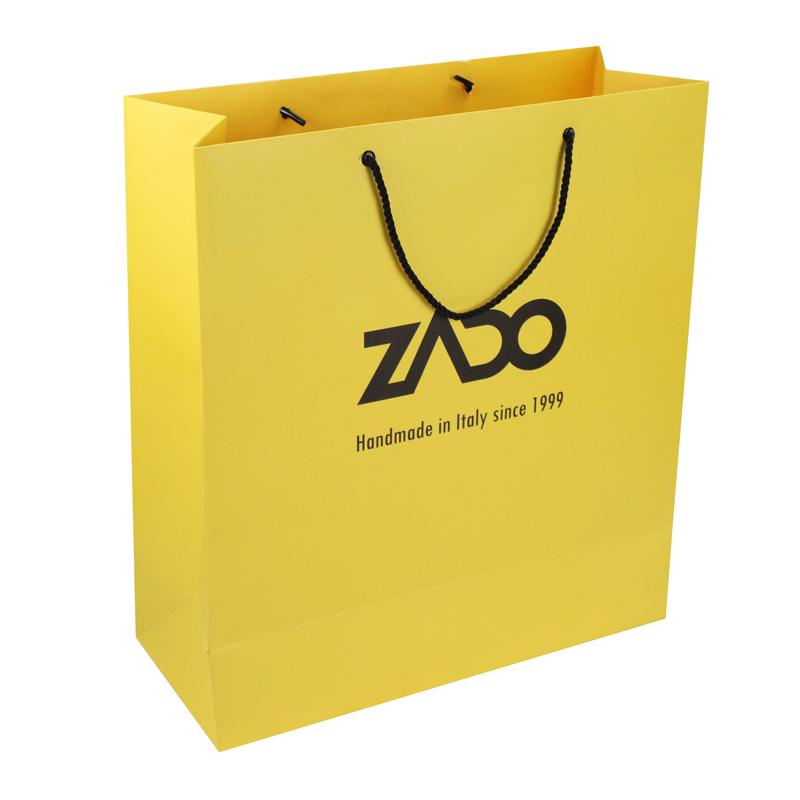 2. مادة الحقيبة: ورق فني 250 جرامًا للمتر المربع + مقبض حبل