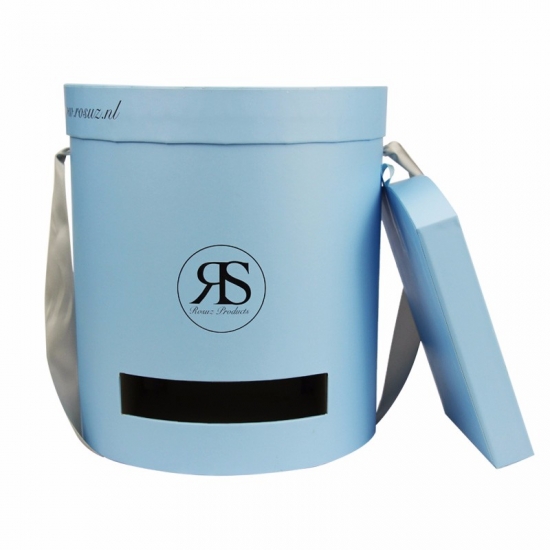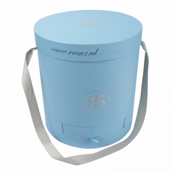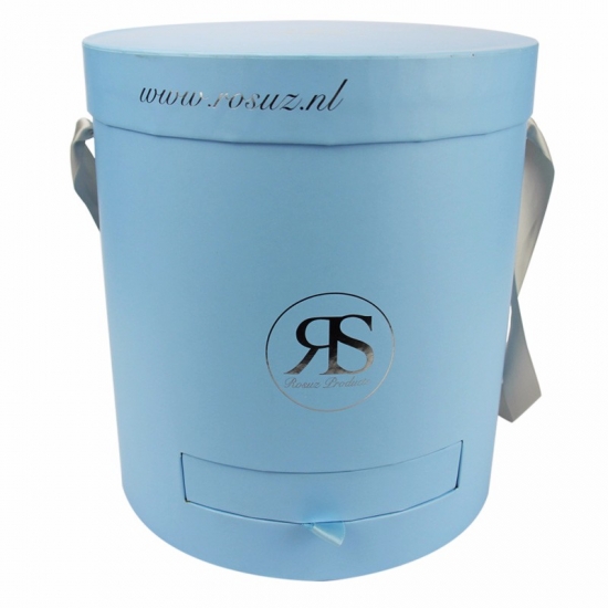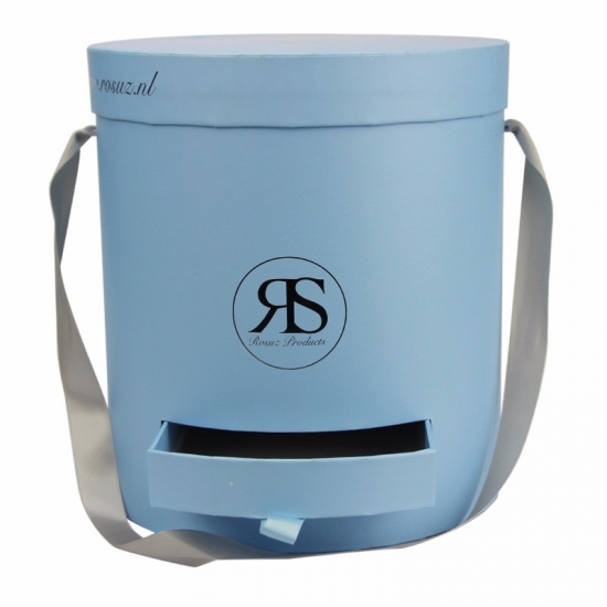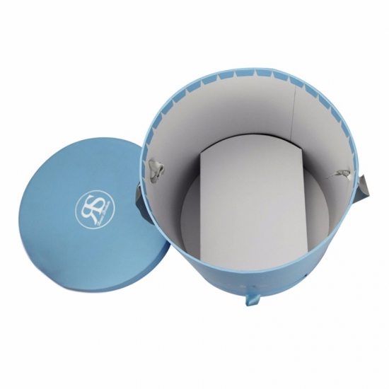 صناديق ورقية دائرية باللون الأزرق الفاتح مع غطاء ودرج صغير