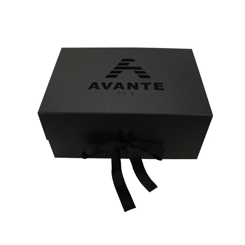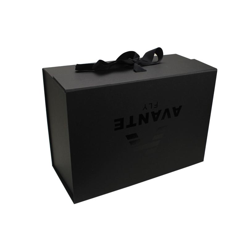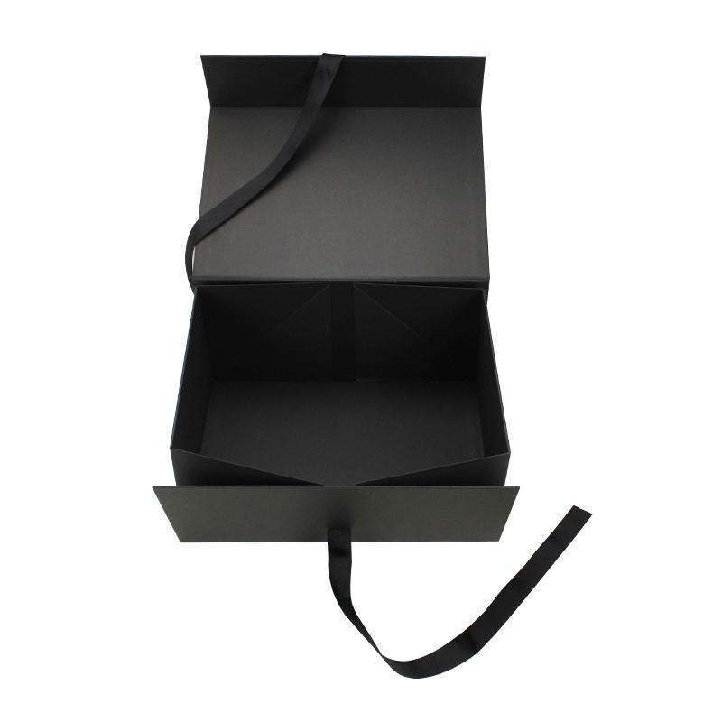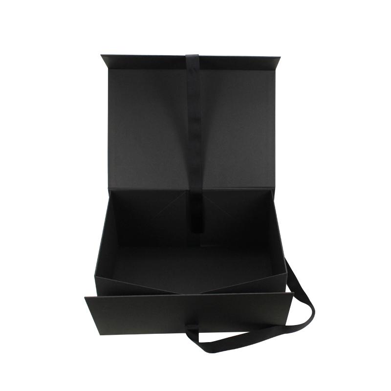 هذا هو اللون الأسود الراقية صندوق هدايا قابل للطي مع شريط شعار مخصص مخصص، مناسب لصندوق تغليف الملابس