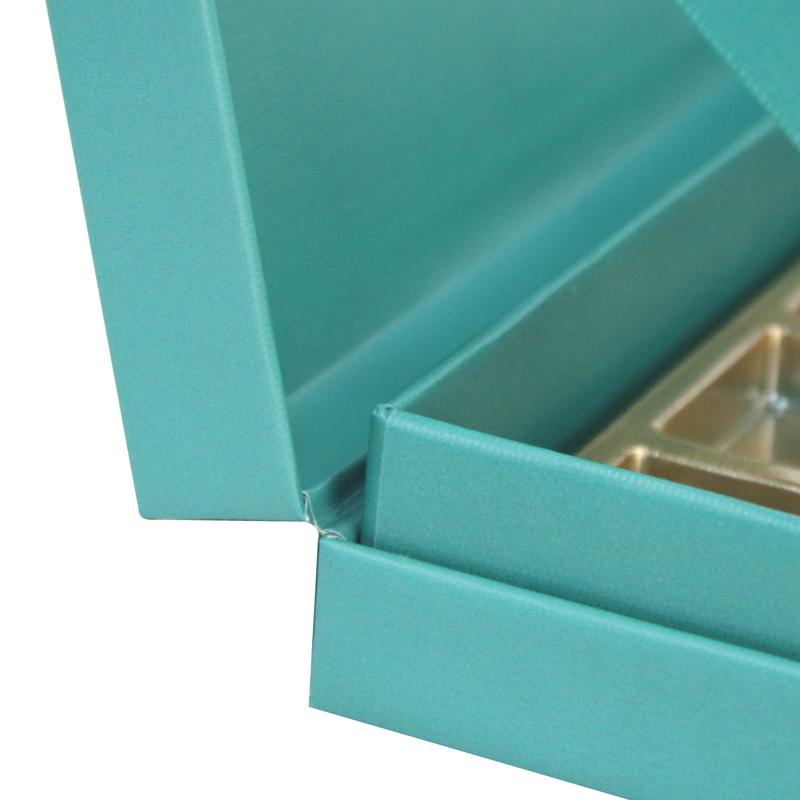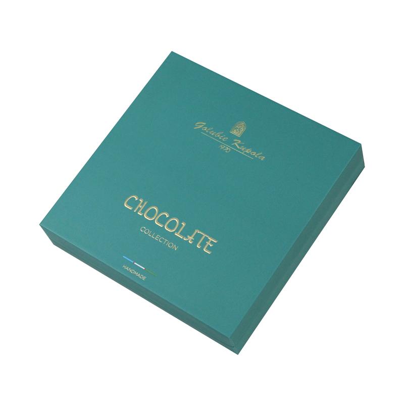3. مادة الصندوق: ورق خاص أخضر 120 جرامًا للمتر المربع + ورق مقوى رمادي 2 مم + حشوة نفطة + ورق شوكولاتة أسود