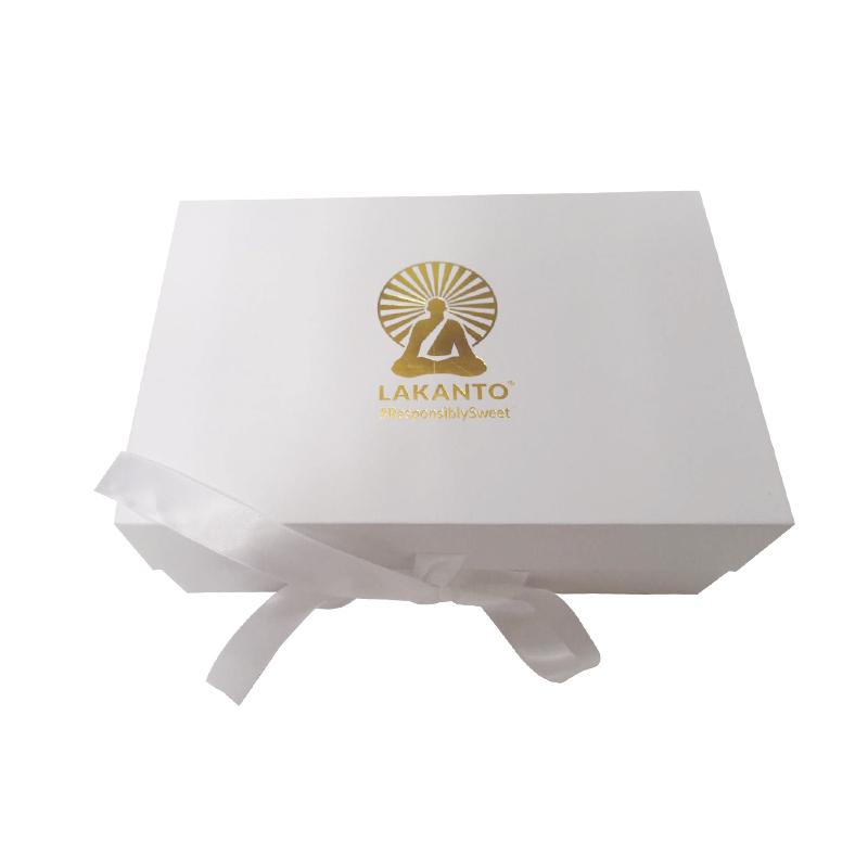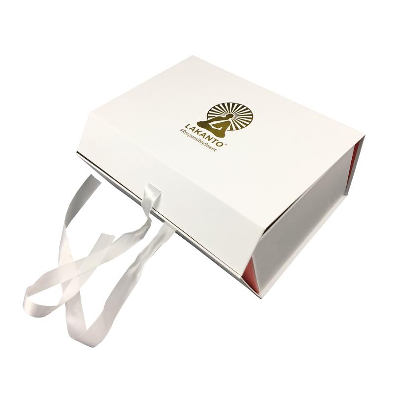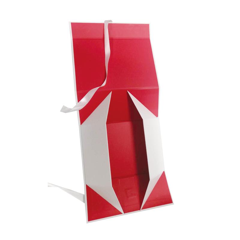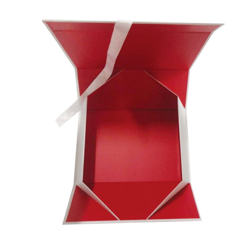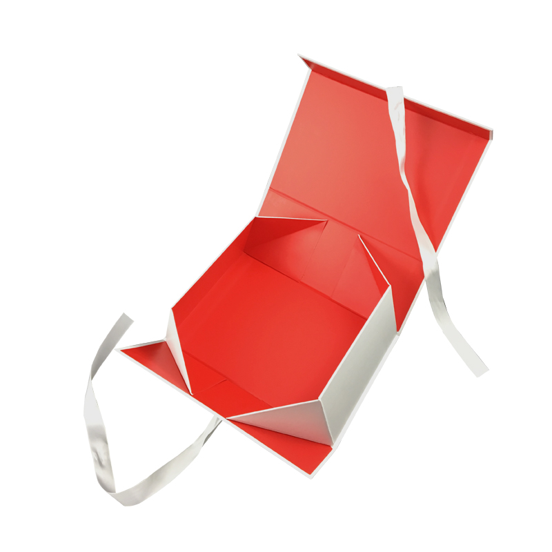 هذا هو اللون الأبيض صندوق هدايا قابل للطي مع شريط مع ختم الرقائق المعدنية على الجزء الخارجي، والجزء الداخلي باللون الأحمر لجعل تغليفك غير رتيب