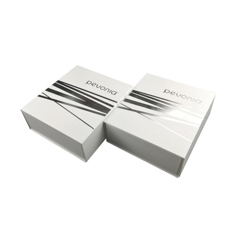 صندوق مغناطيسي قابل للطي عالي الجودة مصنوع من ورق فني بوزن 157 غرامًا للمتر المربع، ومُغلّف بألواح خشبية صلبة فاخرة بوزن 1200 غرام للمتر المربع. إنه تصميم شائع جدًا للصناديق القابلة للطي. يحمل شعارًا مطبوعًا بورق فضي ساخن.