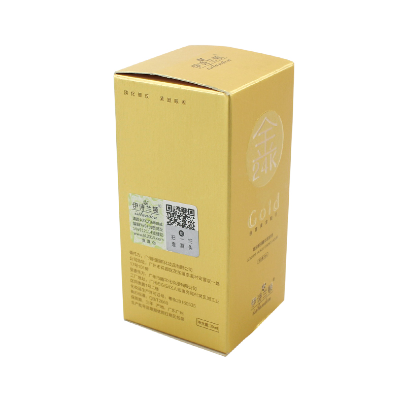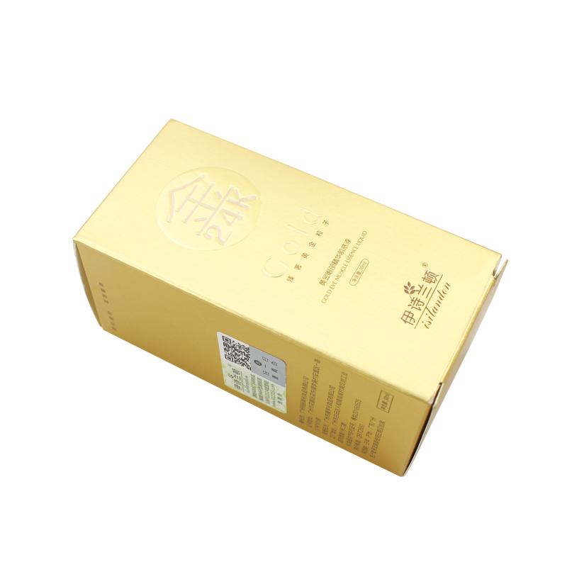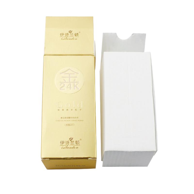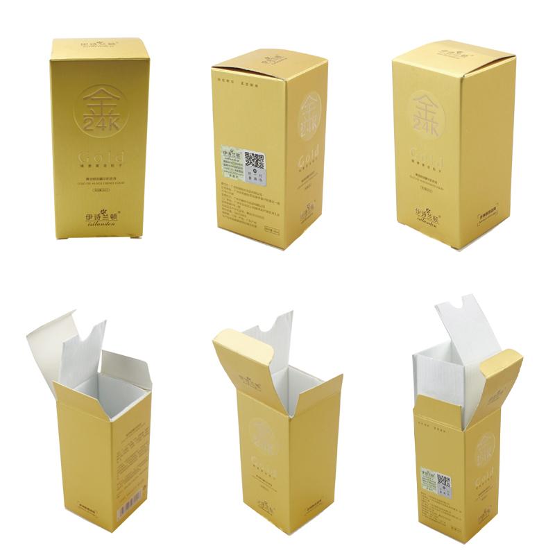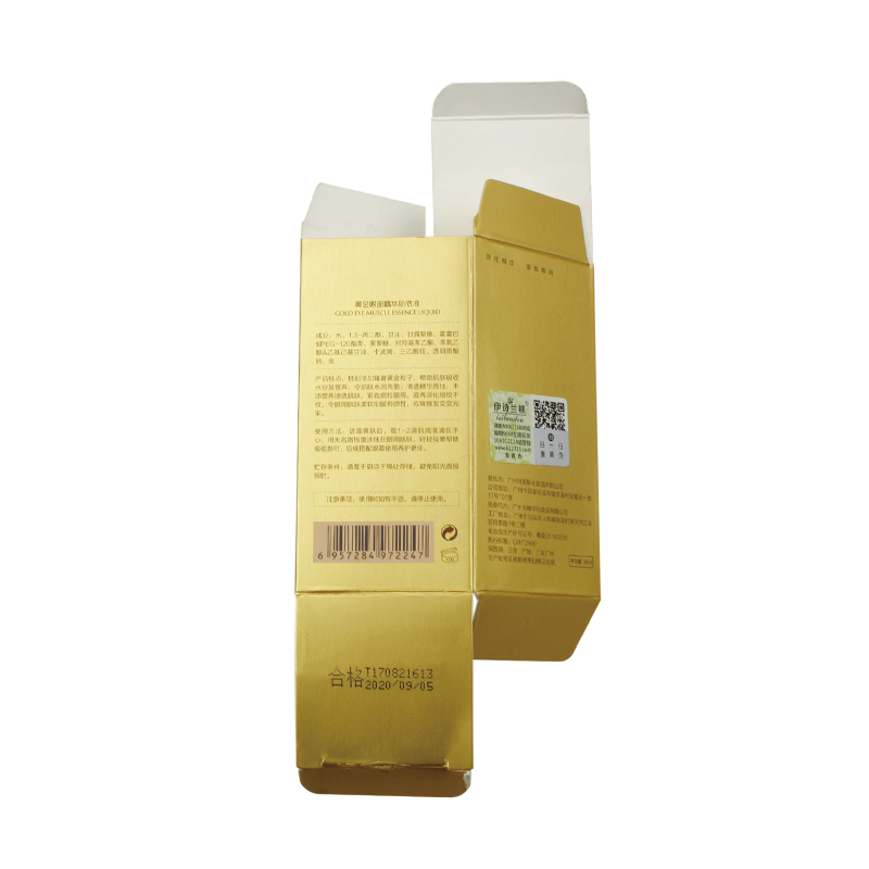 هذه هي صندوق بطاقات ناعم محمول الذي جعل من ورق خاص لامع + ورق فلوت كي، الجزء الخارجي من الصندوق مليء بالنص وطباعة الشعار بما في ذلك التعليمات والرمز الشريطي، داخل ورق مموج صغير أبيض مخصص.