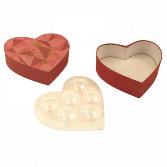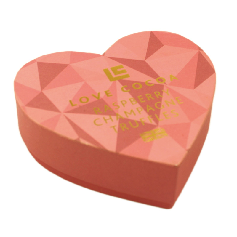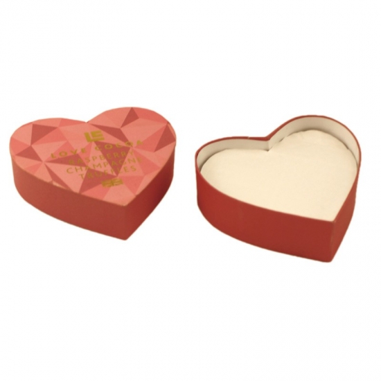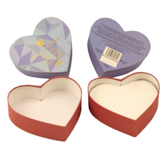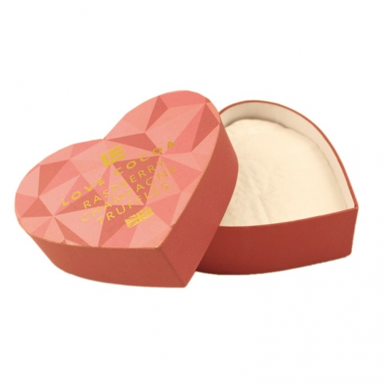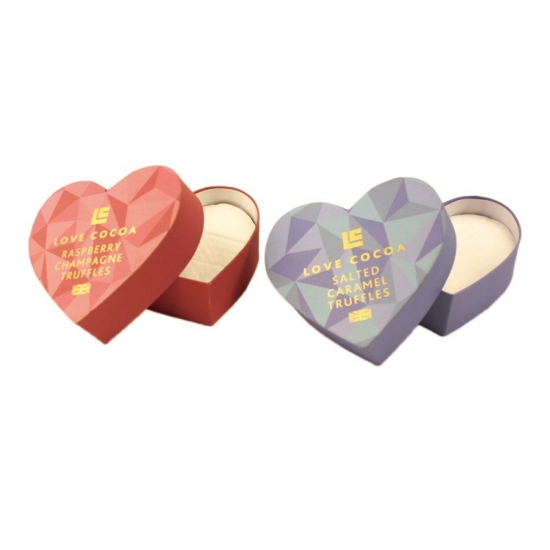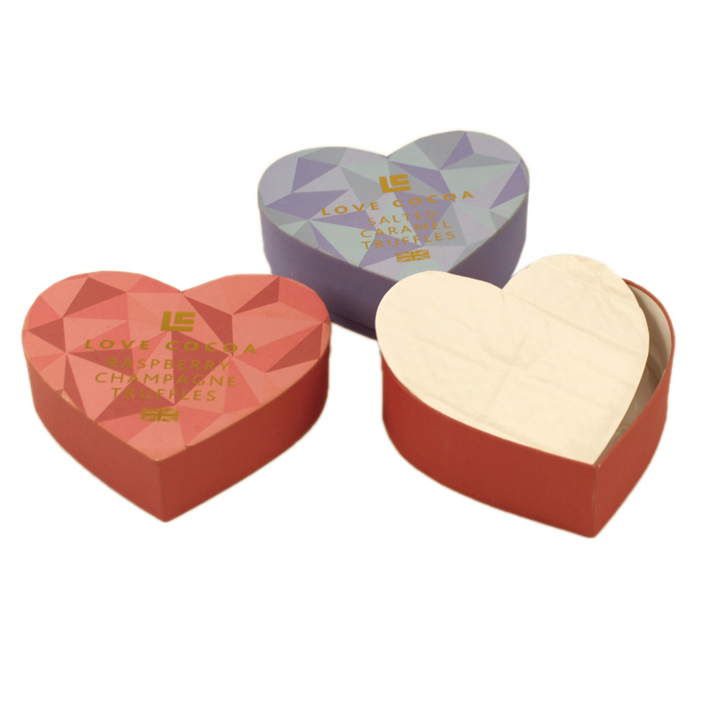 صناديق شوكولاتة على شكل قلب صغيرة الحجم مخصصة مع غطاء، الغطاء مصنوع من ورق مطلي والجزء السفلي يستخدم ورقًا خاصًا.