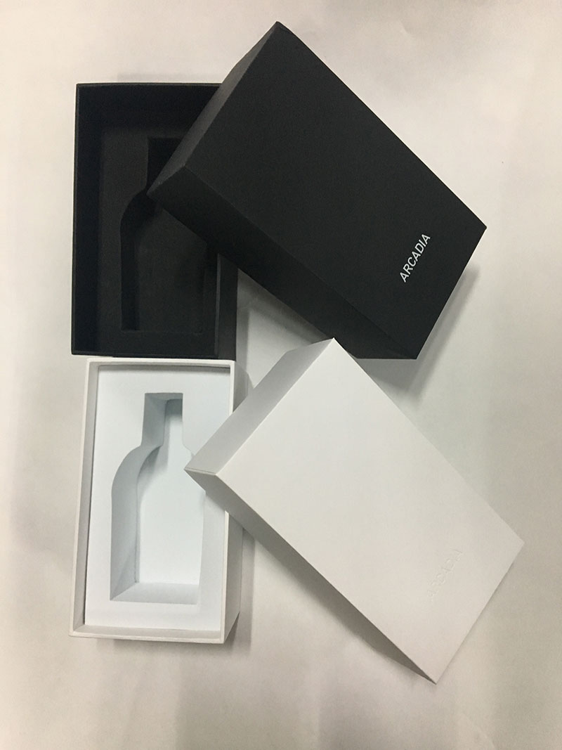 مصنوع من ورق خاص أسود/ورق فني C2S 157 جرام + لوح رمادي 1200 جرام، أدخل رغوة EVA سوداء/بيضاء صلبة جيدة والتي ستحافظ على المنتجات في مكانها.