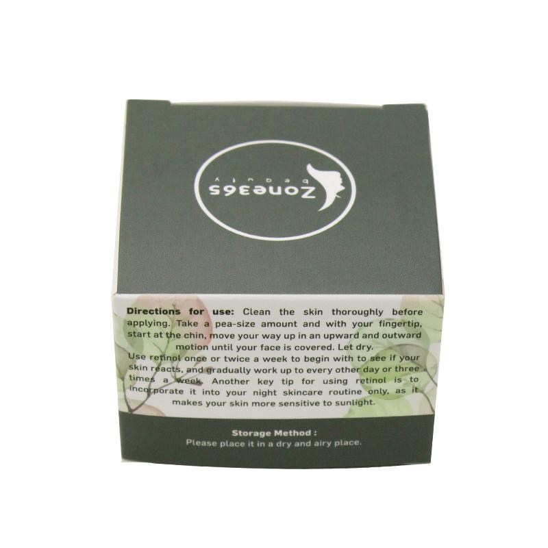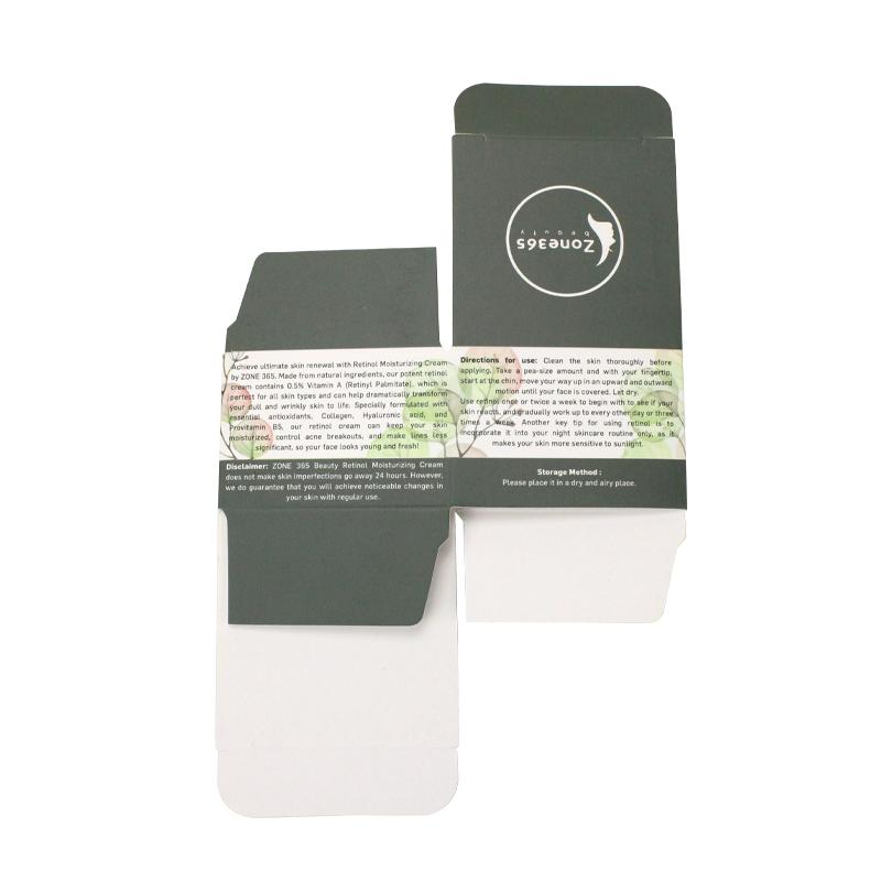 هذه هي صندوق بطاقات تجميلية ناعمة الذي جعل من خلال طلاء 350gsm من ورق فني من جانب واحد، الجزء الخارجي من الصندوق مليء بالنص وطباعة الشعار بما في ذلك التعليمات والرمز الشريطي، والداخل فارغ باللون الأبيض بدون أي طباعة.