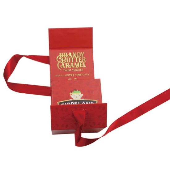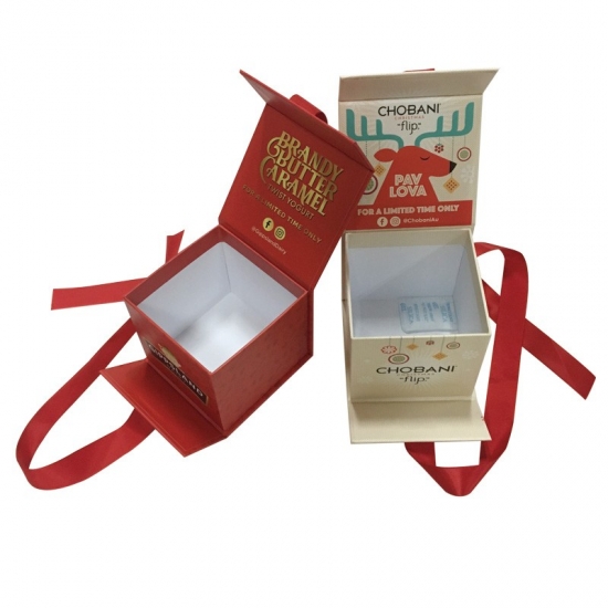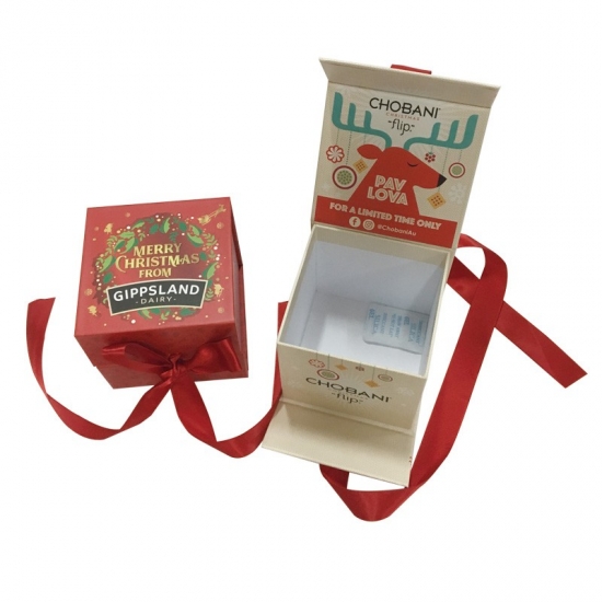إنها عبارة عن صناديق هدايا عيد الميلاد الصغيرة المغناطيسية المسطحة الذي جعل باستخدام ورق فني C2S بوزن 157 جرامًا + لوح رمادي بوزن 1200 جرام شريط أحمر.