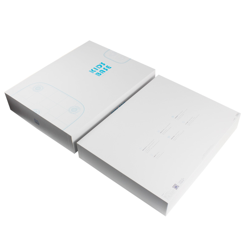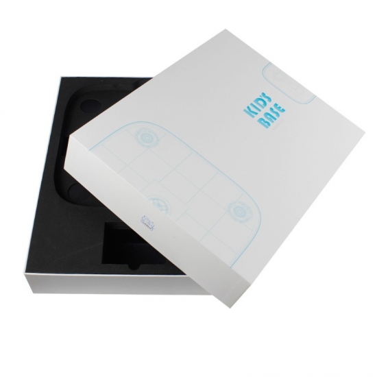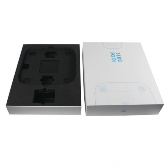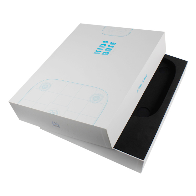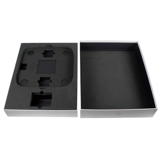 هذه هي أعلى وأسفل صندوق الذي جعل باستخدام ورق فني C2S 157 جرام + لوح رمادي 1200 جرام، وطباعة شعار أزرق على الصندوق، يحتوي الجزء الداخلي من الصندوق على حشوة إسفنجية سوداء مصممة خصيصًا.
